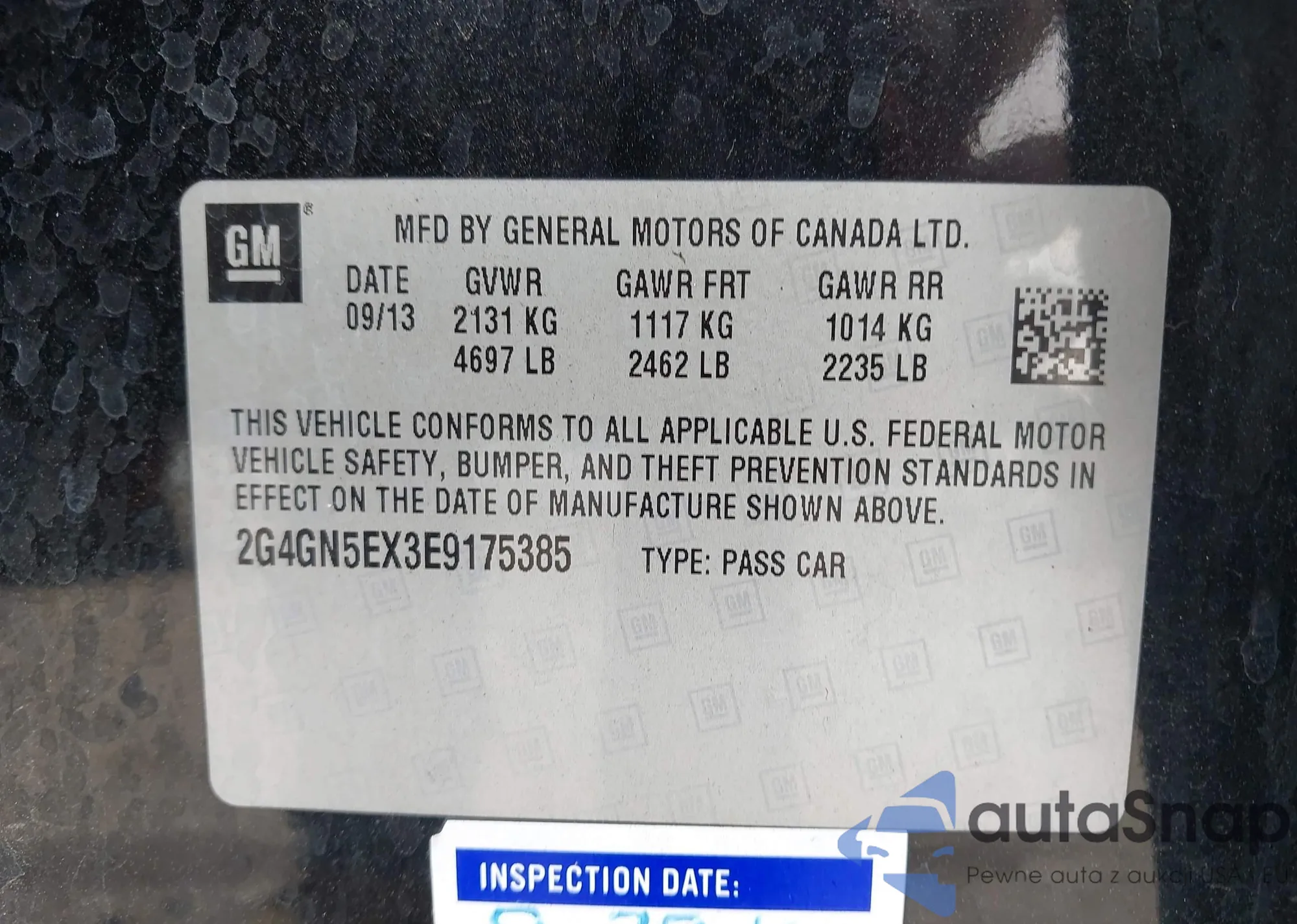 • VIN 2G4GN5EX3E9175385