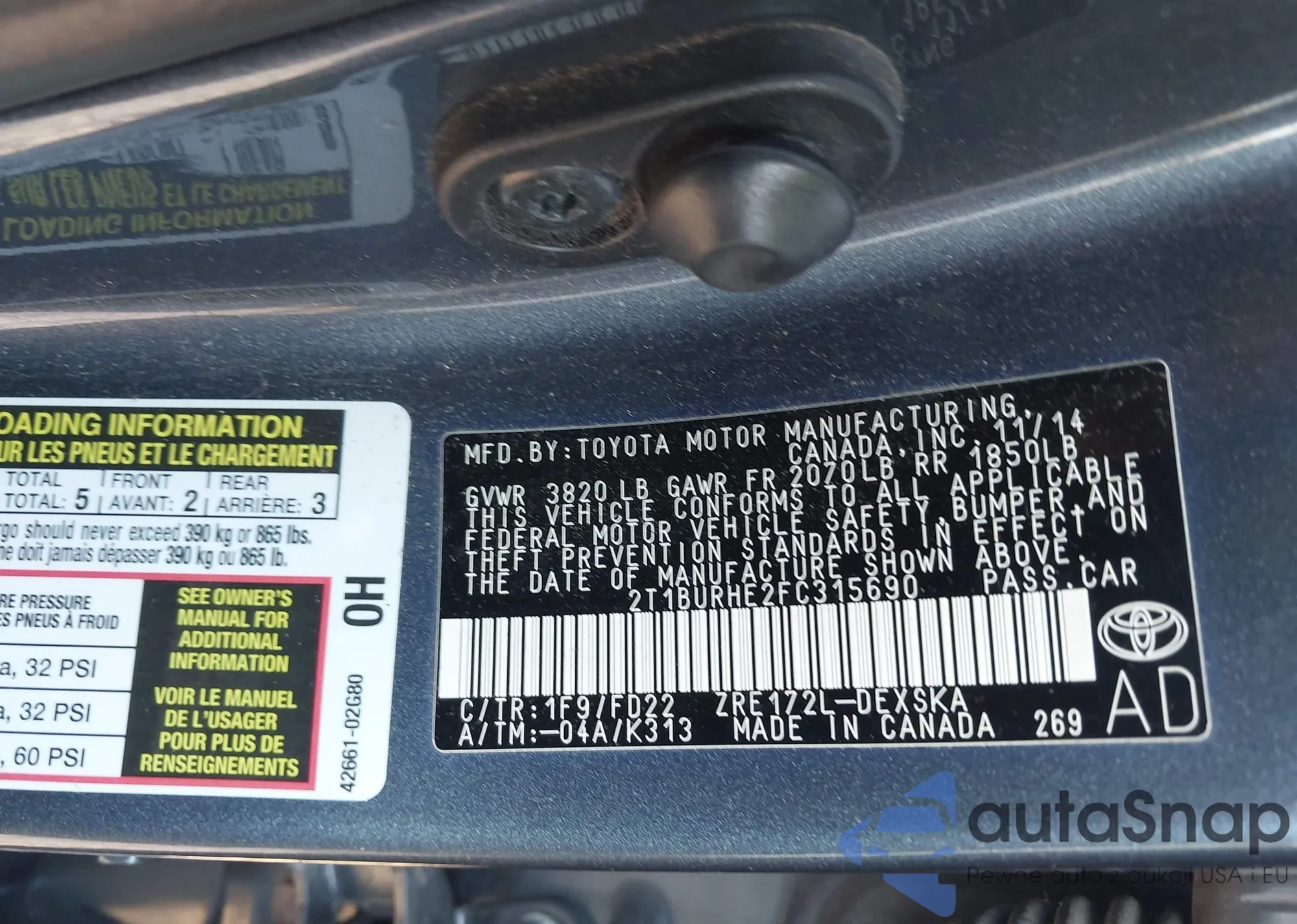 • VIN 2T1BURHE2FC315690