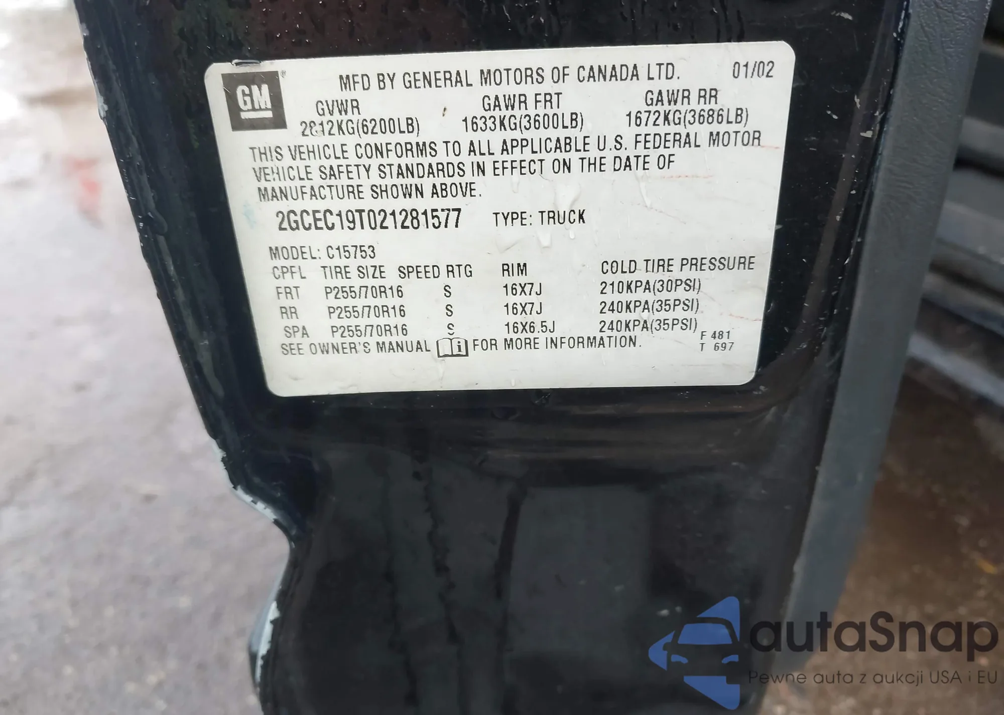 LOT: 43009868 VIN: 2GCEC19T021281577
