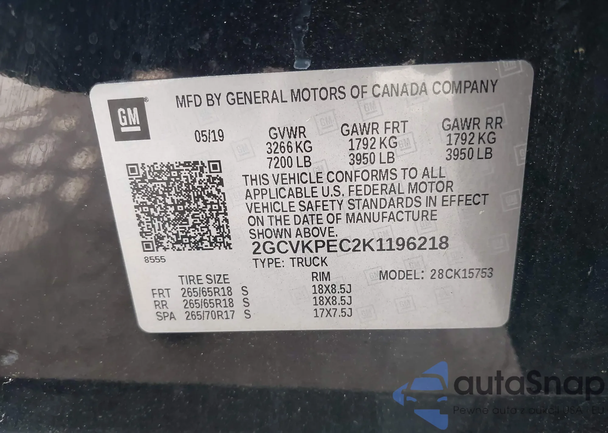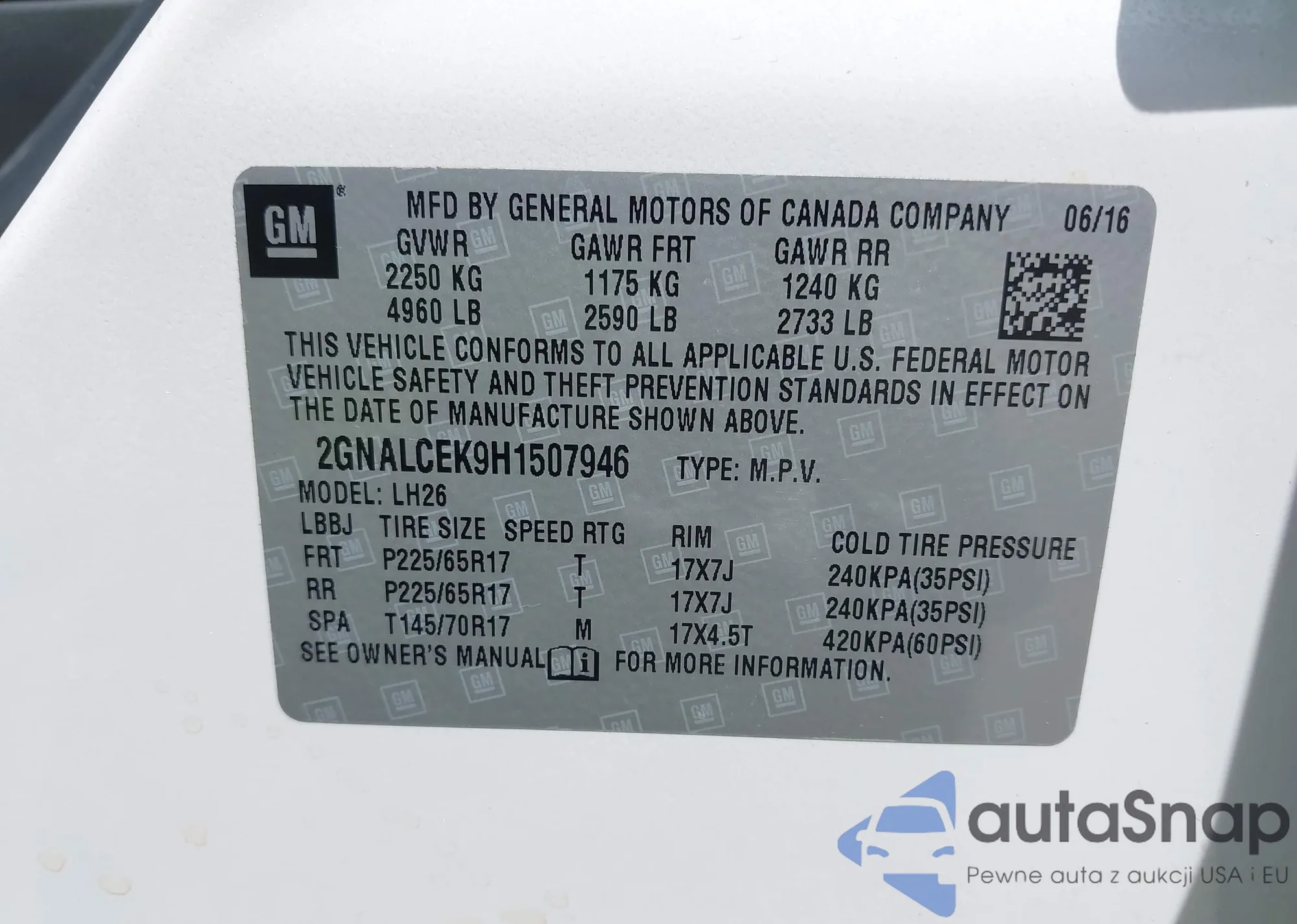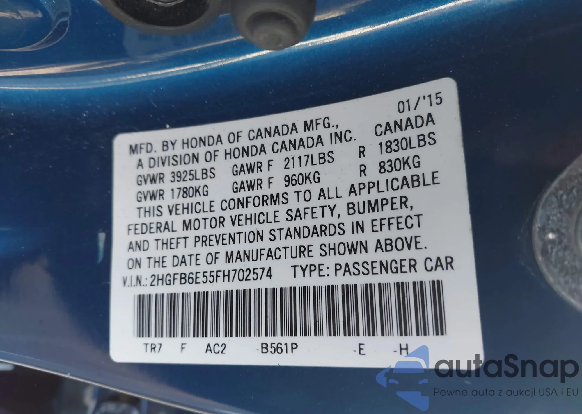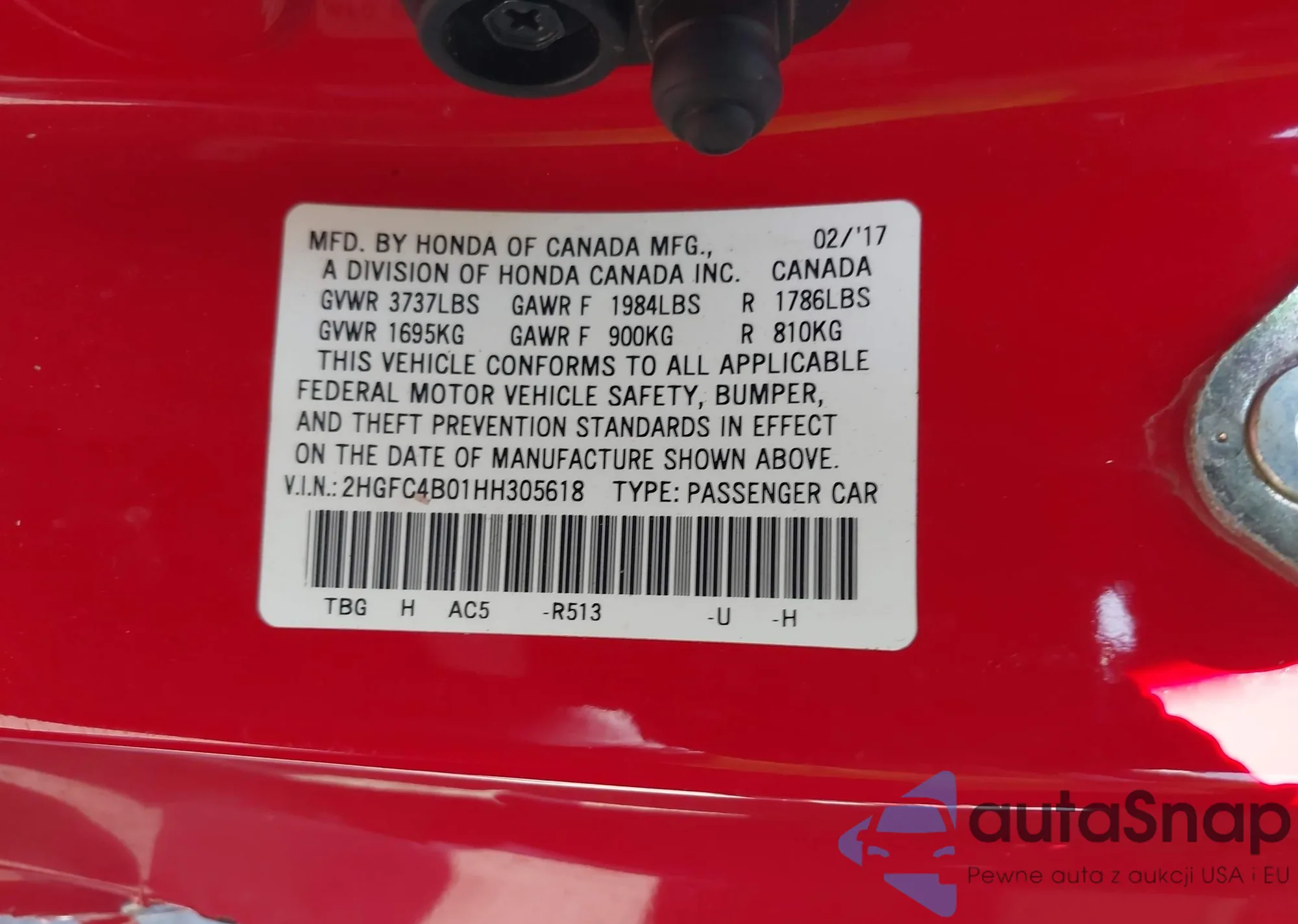 • VIN 2HKRW2H5XLH652231