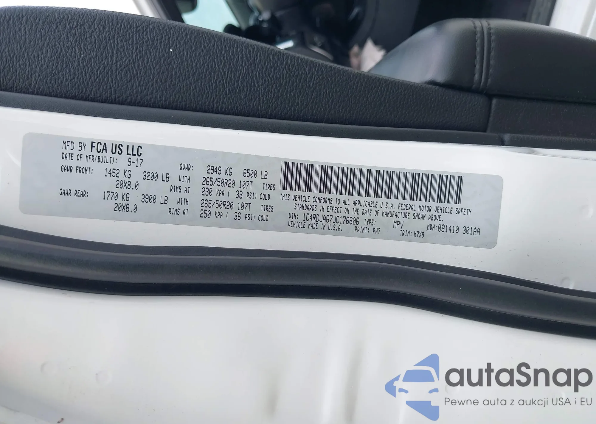 LOT: 43089991 VIN: 1C4RDJAG7JC176606