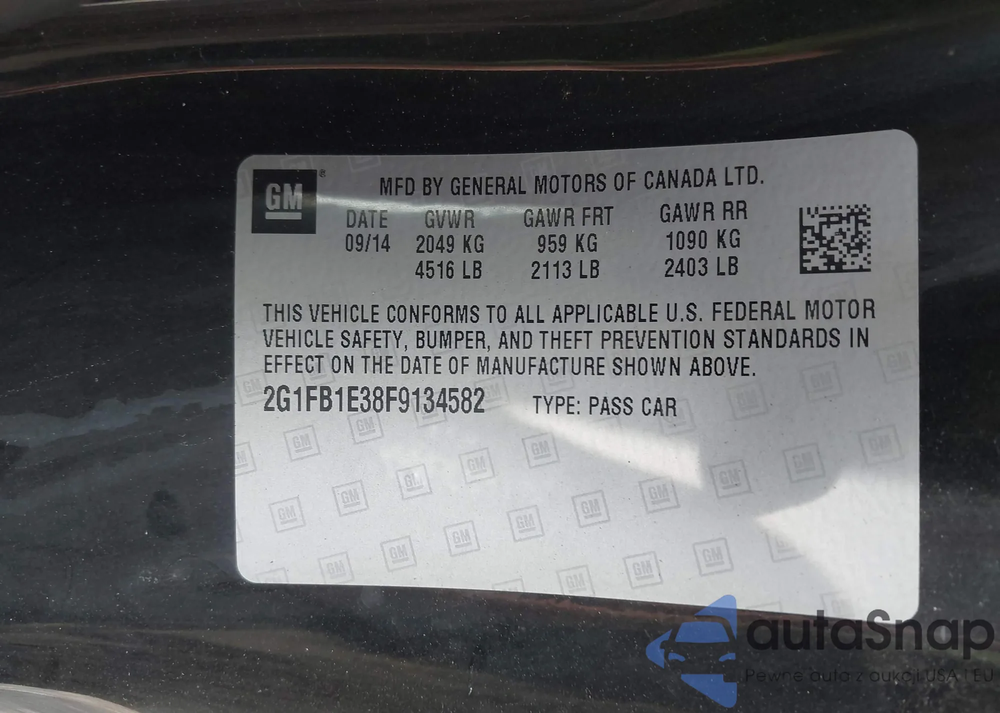 • VIN 2G1FB1E38F9134582
