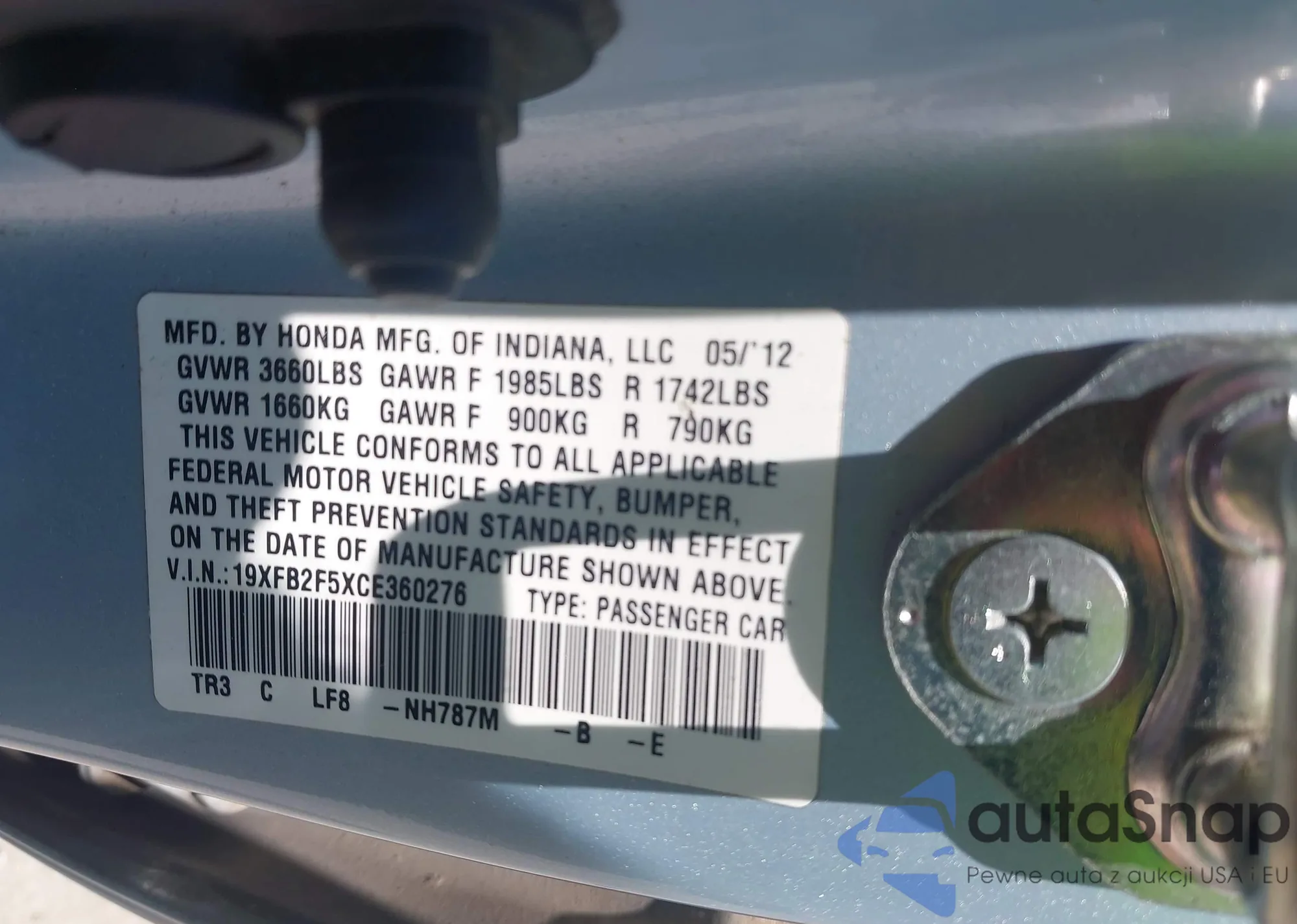 • VIN 19XFB2F5XCE360276