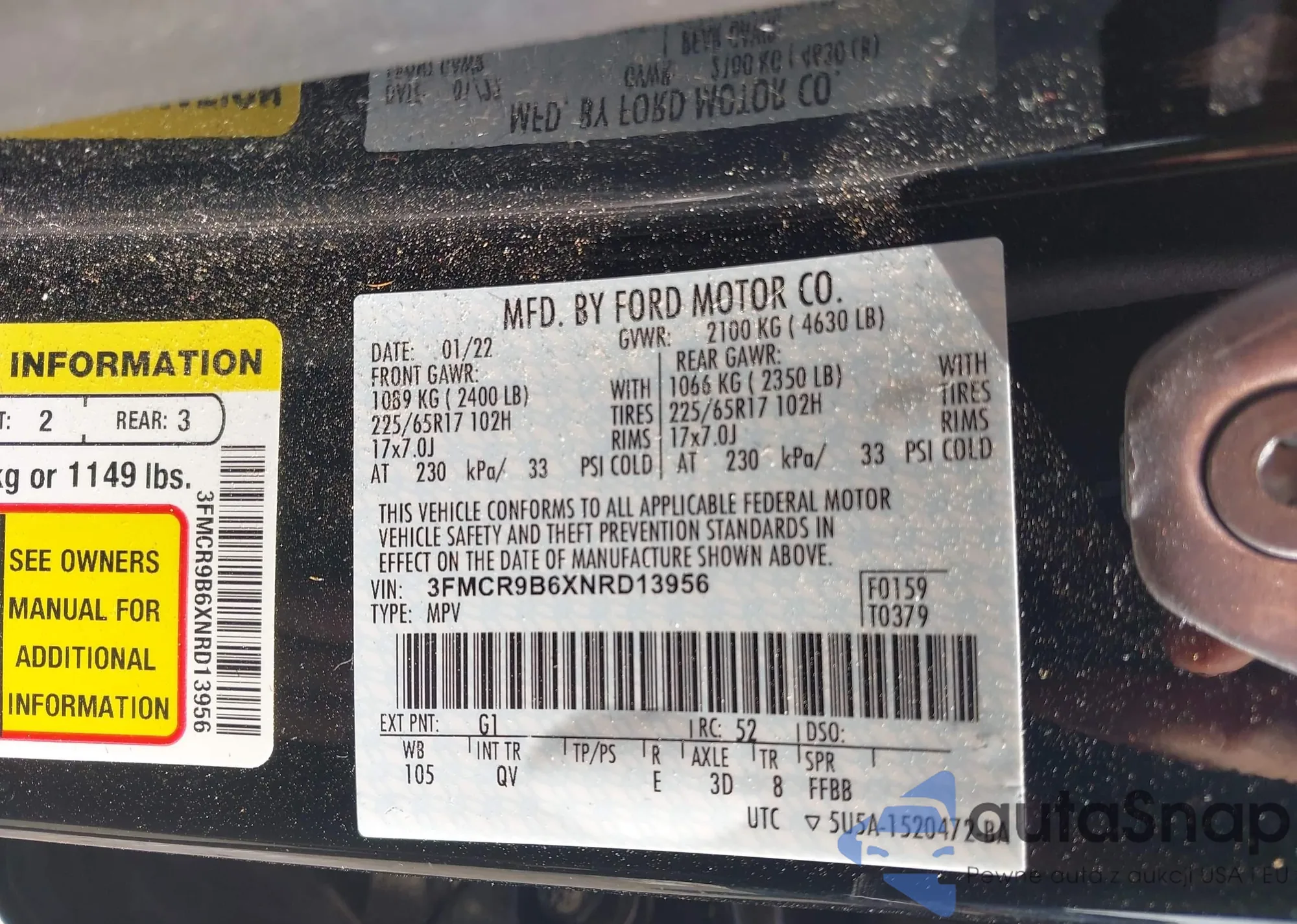 • VIN 3FMCR9B6XNRD13956