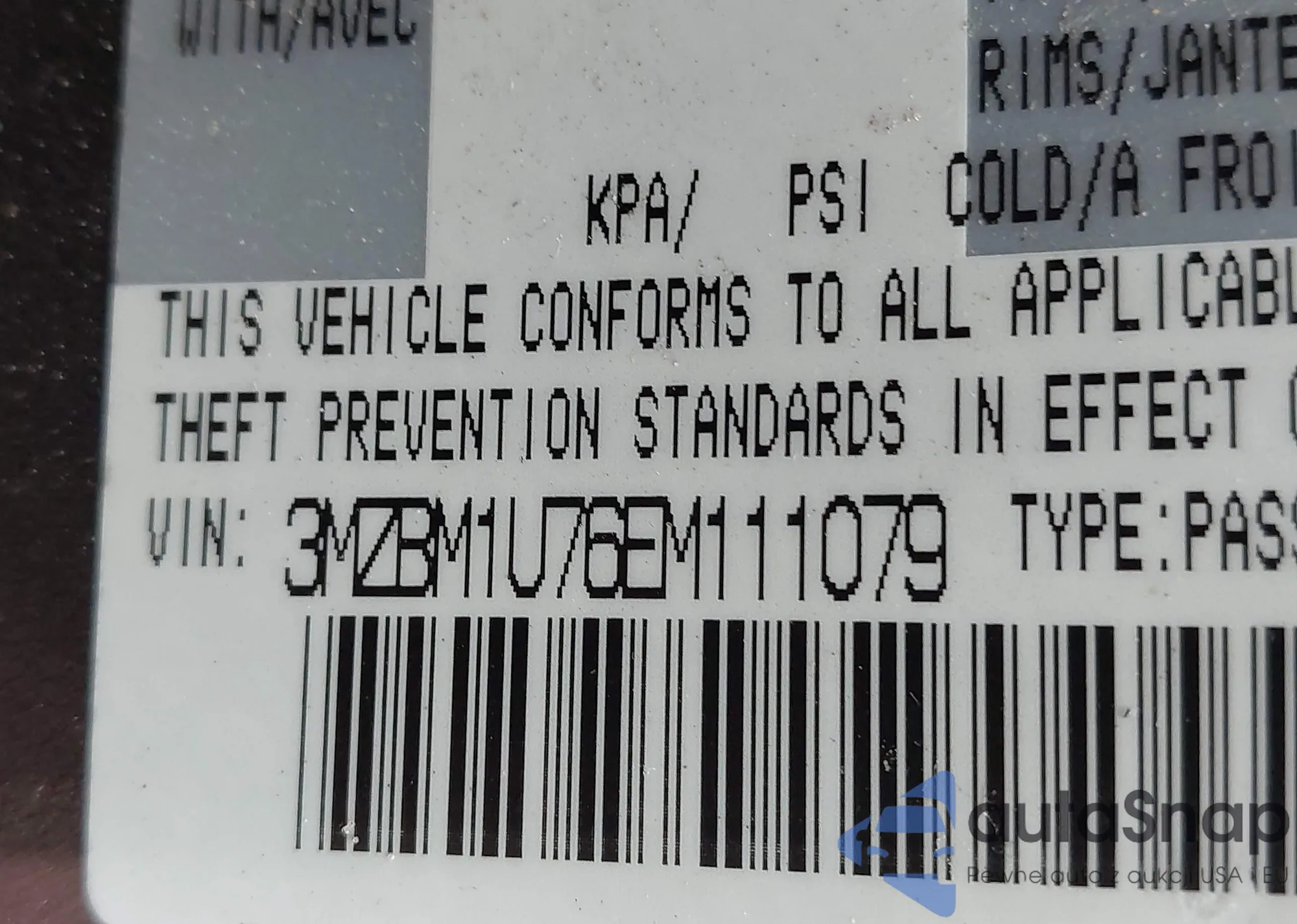 • VIN 3VWBM7BU7PM046189
