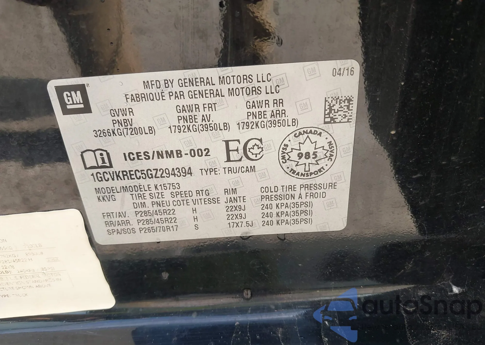 LOT: 42894780 VIN: 1GKKNMLS6HZ138135