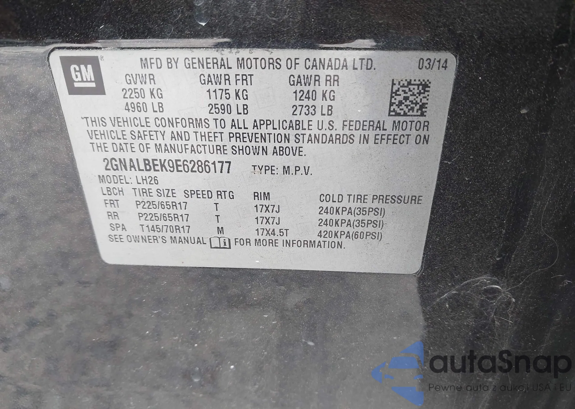 LOT: 43153271 VIN: 2GNALBEK9E6286177