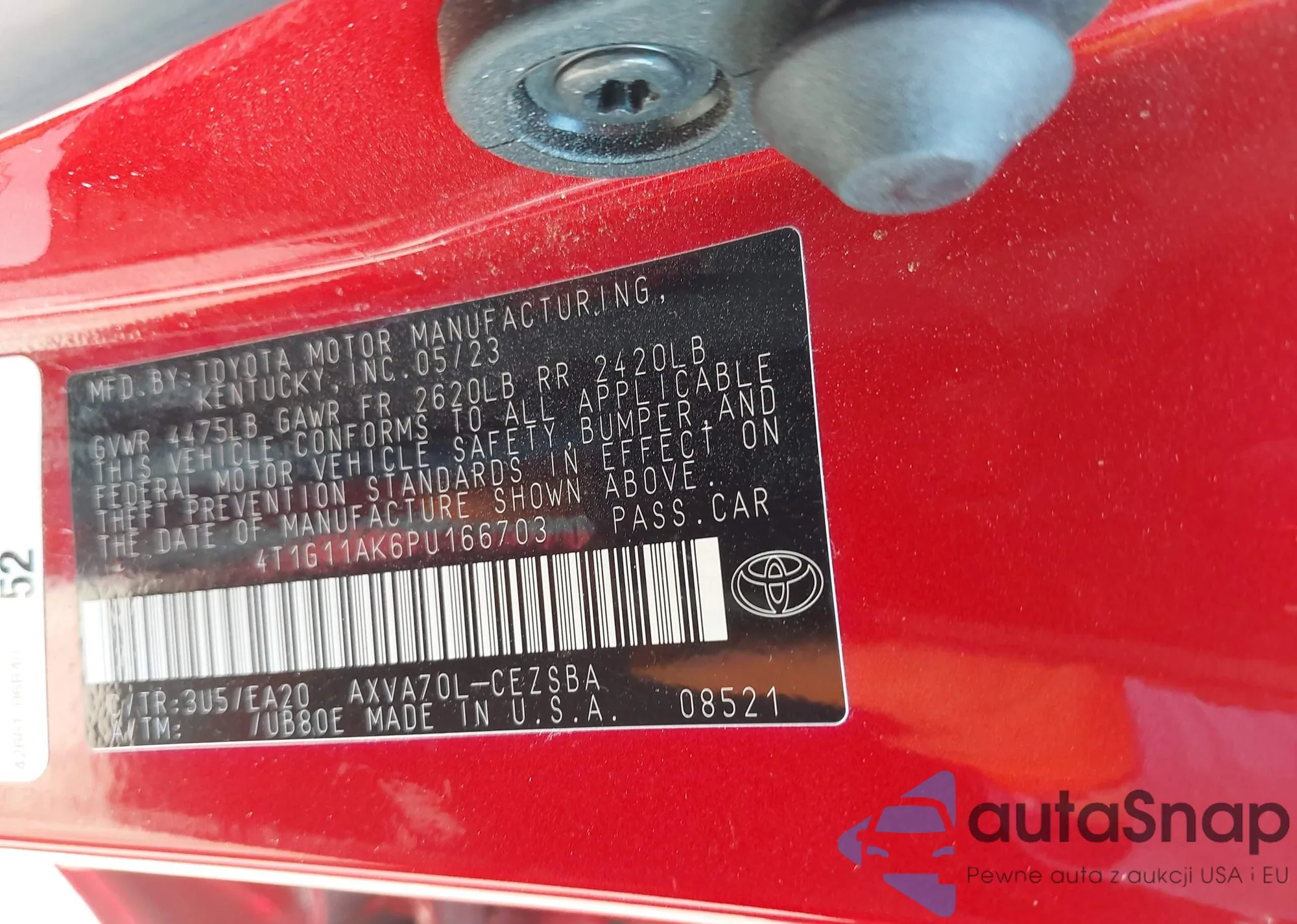 LOT: 43166454 VIN: 4T1G11AK6PU166703
