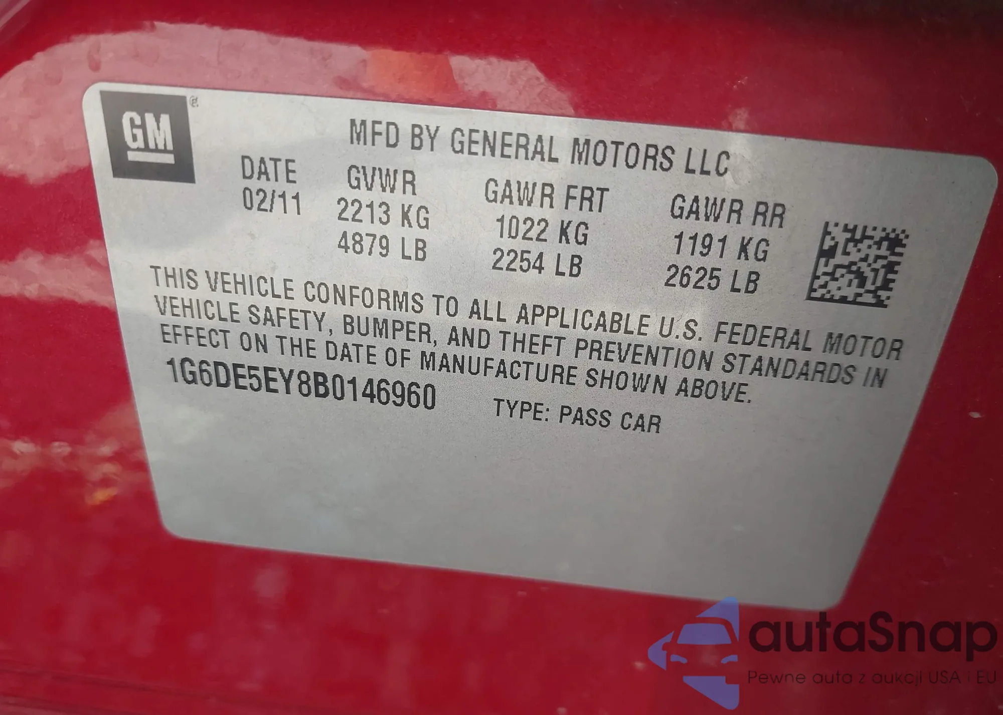 • VIN 1G6DE5EY8B0146960