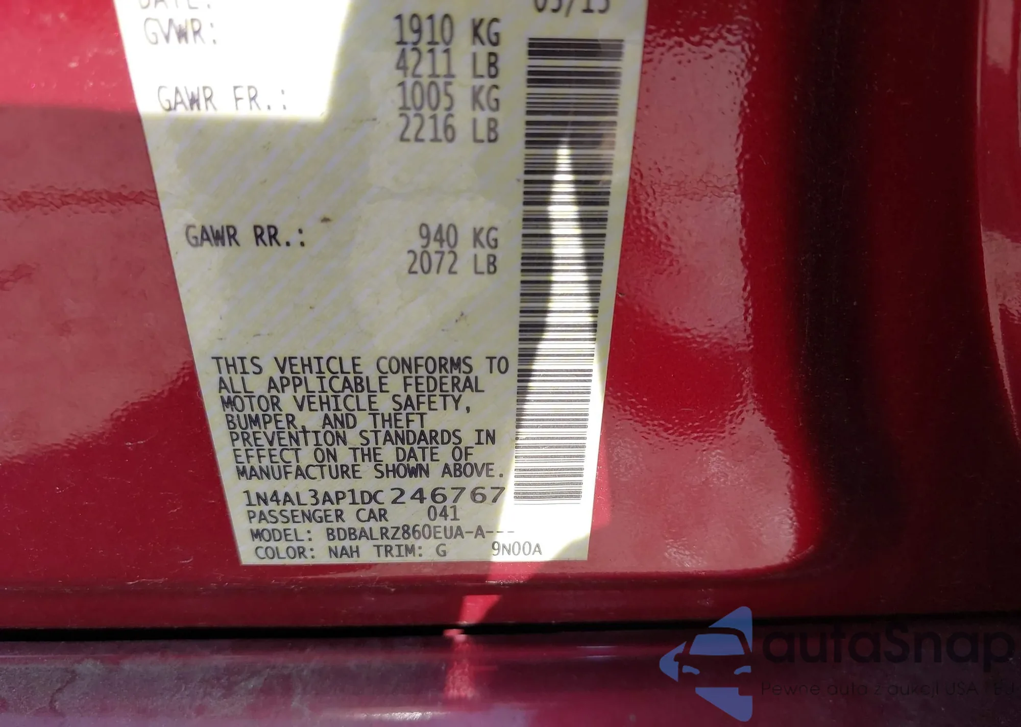 LOT: 43207826 VIN: 1N4AL3AP1DC246767