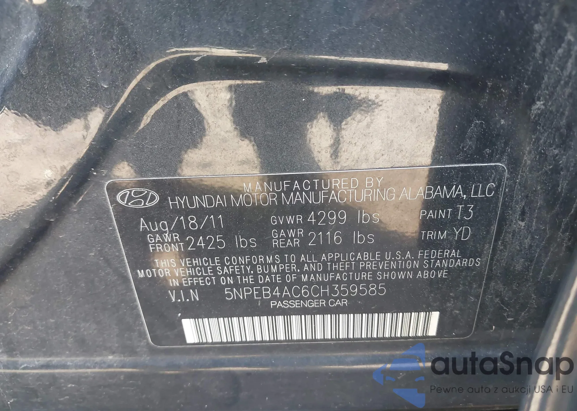 LOT: 43200636 VIN: 5NPEB4AC6CH359585
