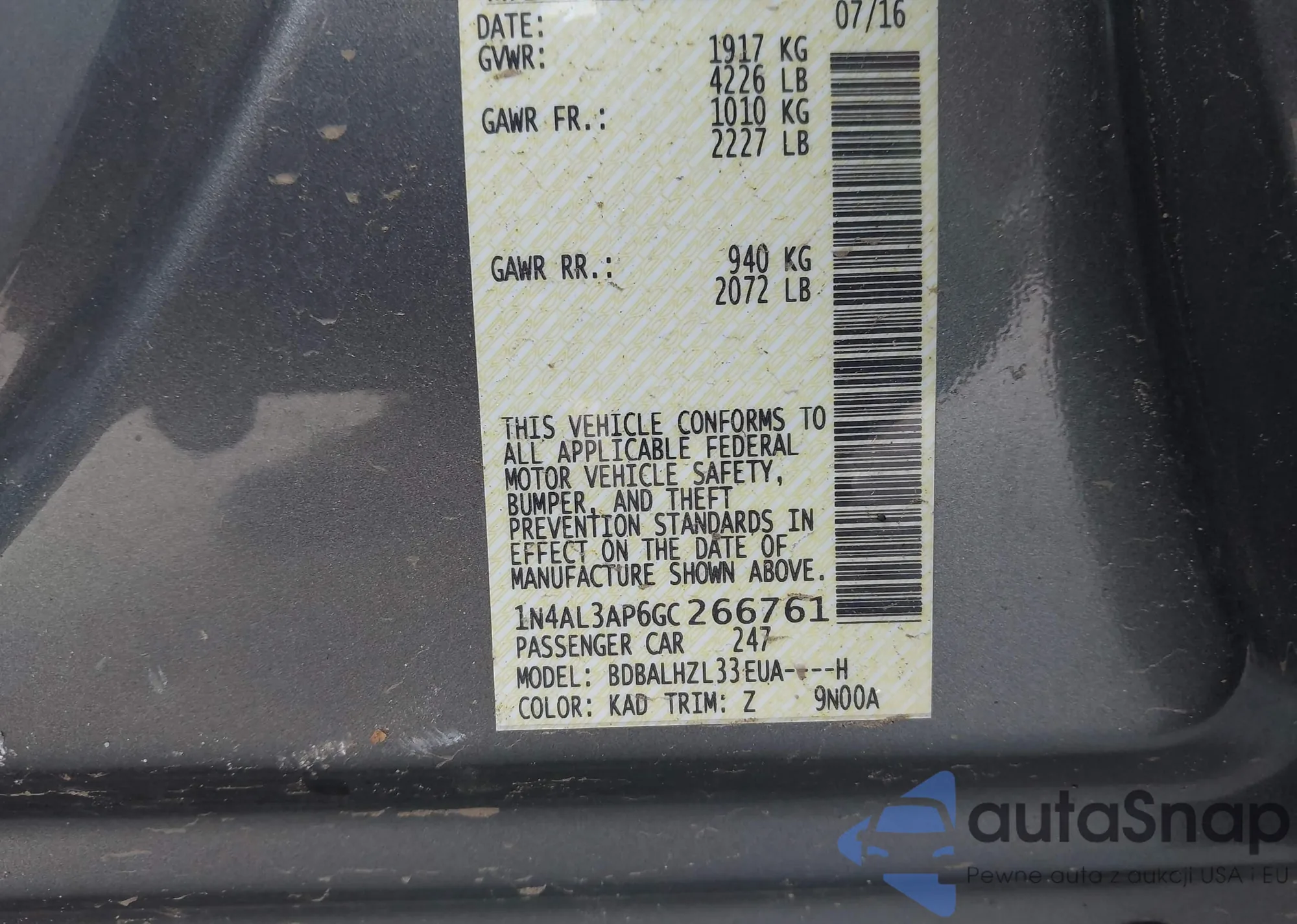 • VIN 1N4AL3AP6GC266761