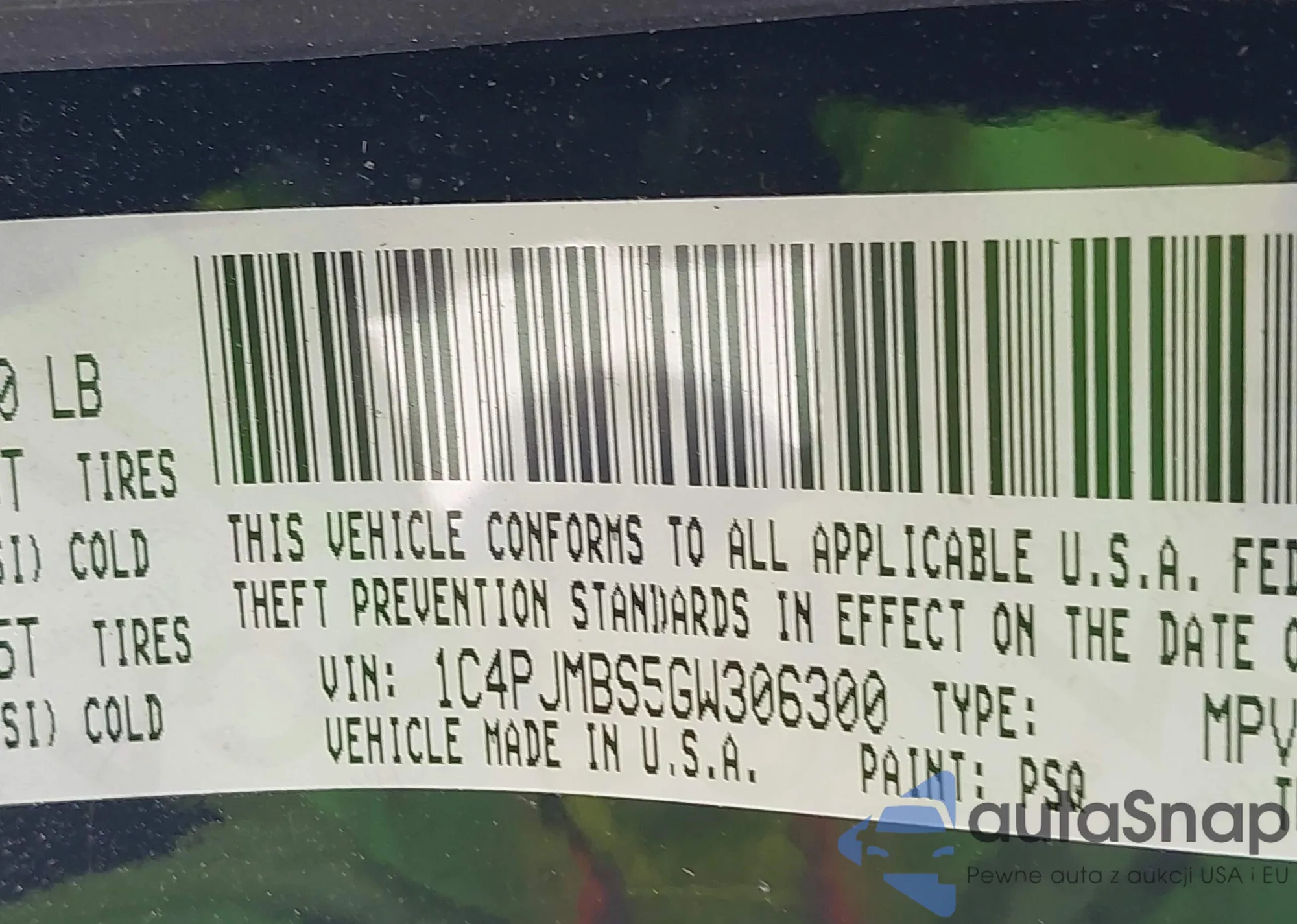 LOT: 43198125 VIN: 1C4PJMBS5GW306300