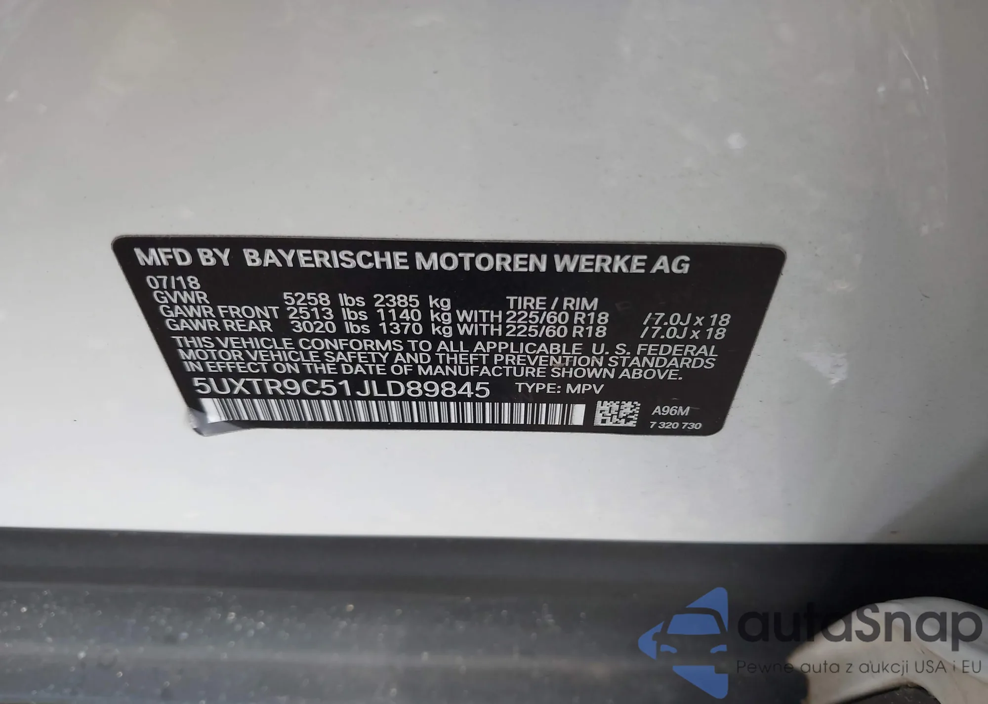 • VIN 5UXTR9C51JLD89845