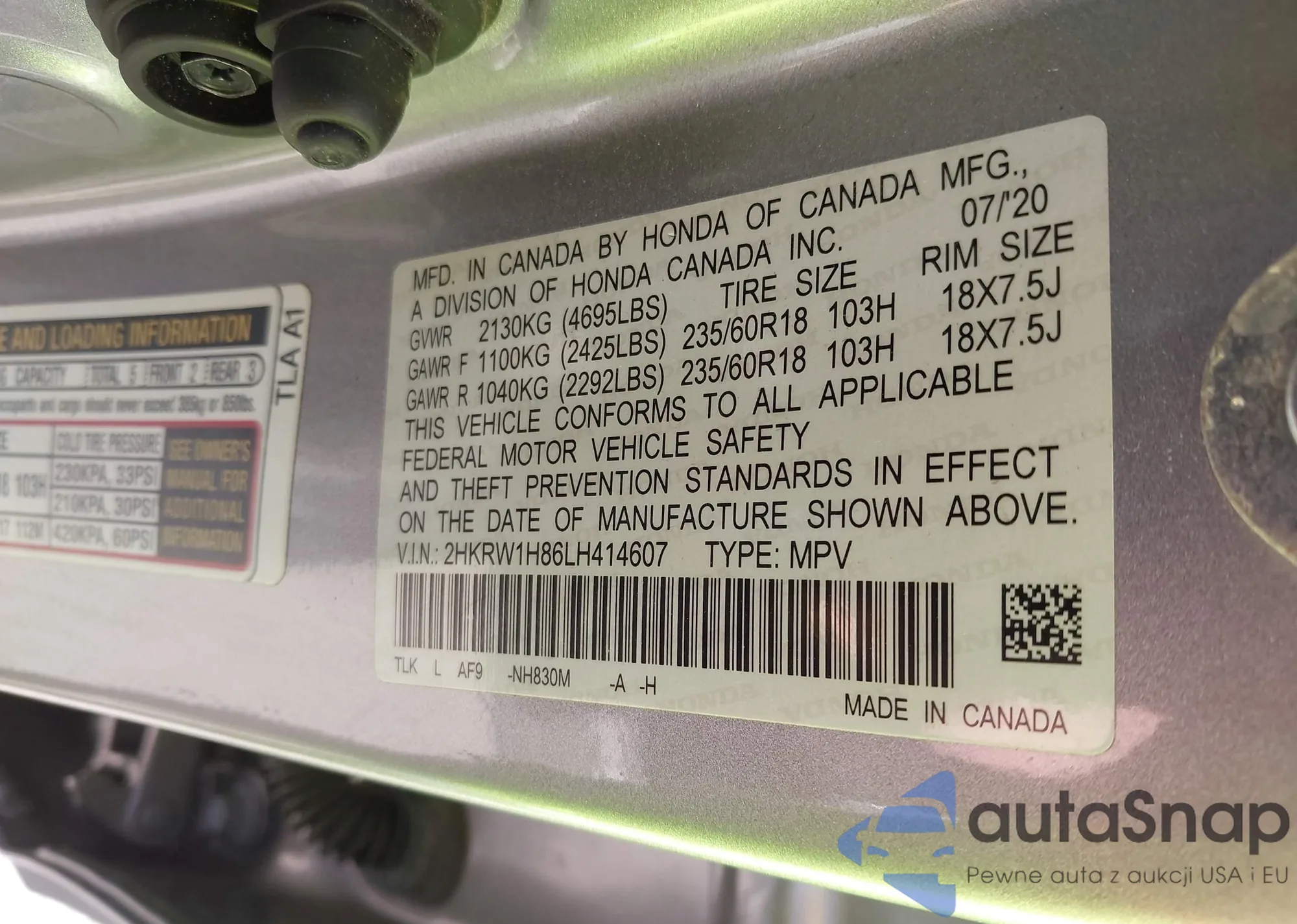 • VIN 2HKRW1H86LH414607
