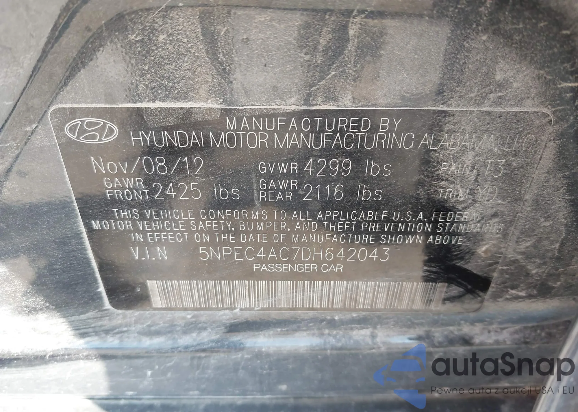 • VIN 5NPEC4AC7DH642043