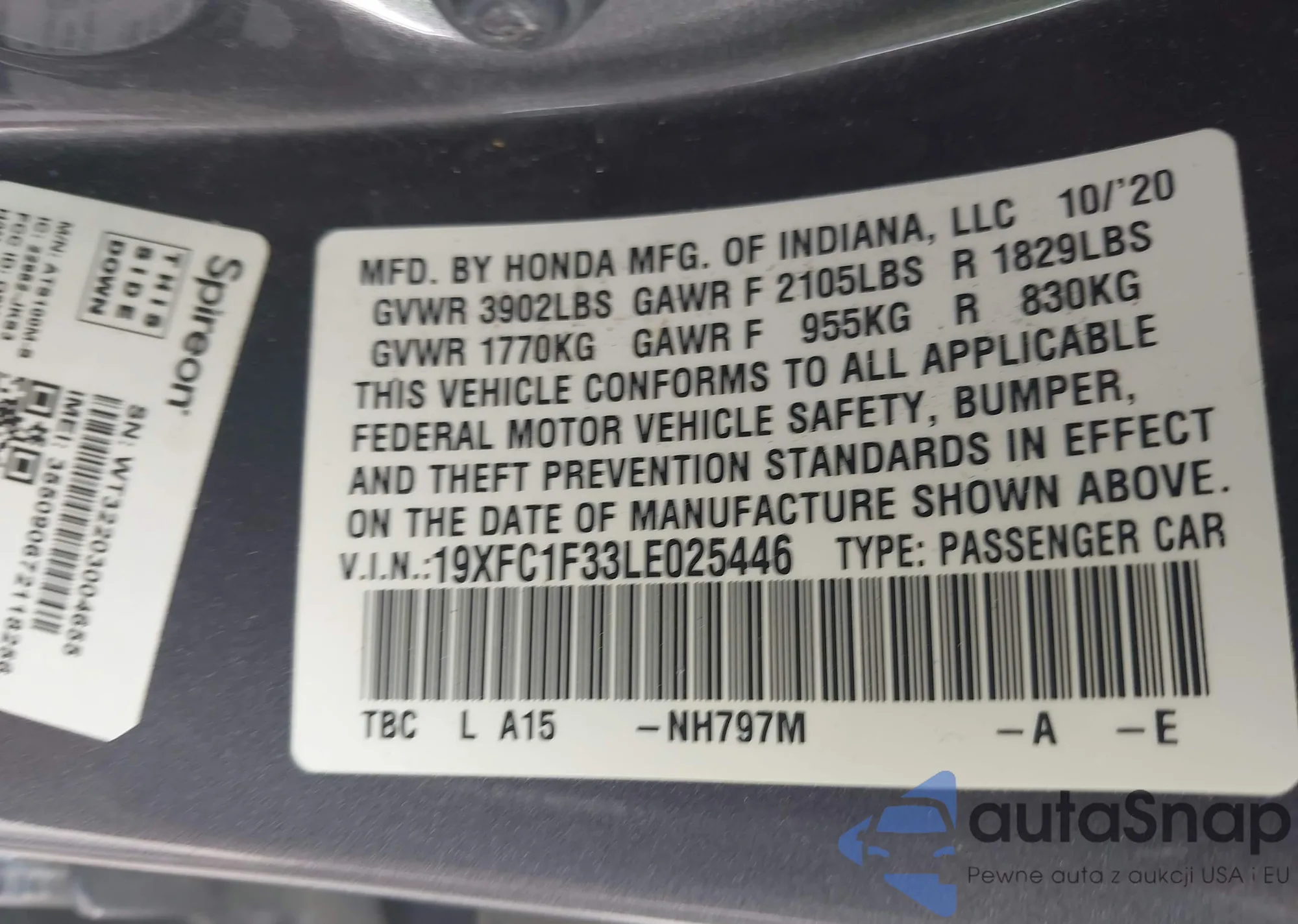 • VIN 19XFC1F33LE025446