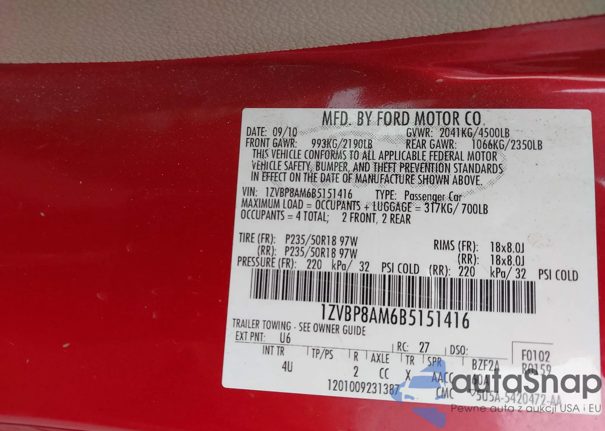• VIN 1ZVBP8AM6B5151416