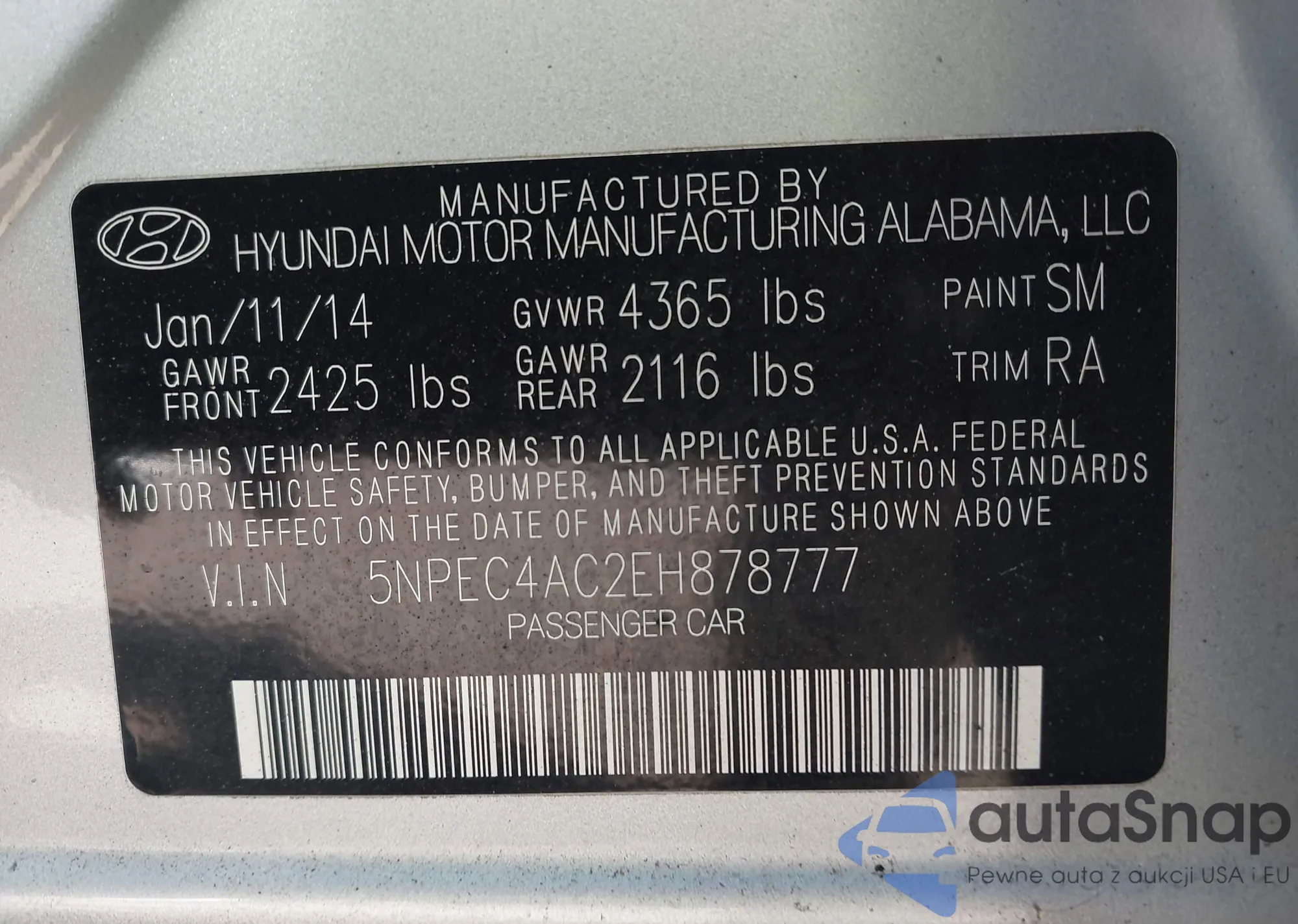 • VIN 5NPEC4AC2EH878777