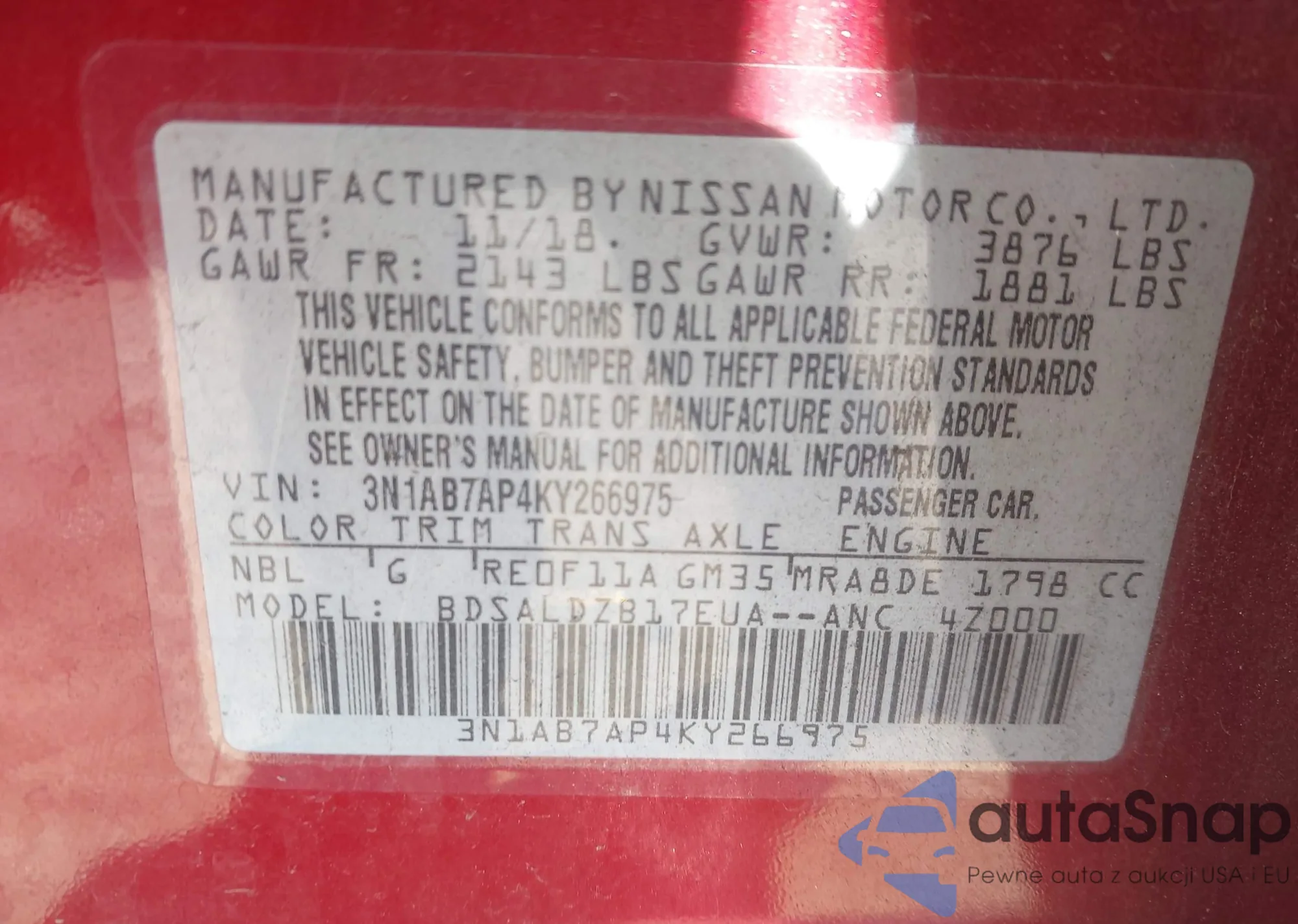 • VIN 3N1AB7AP4KY266975