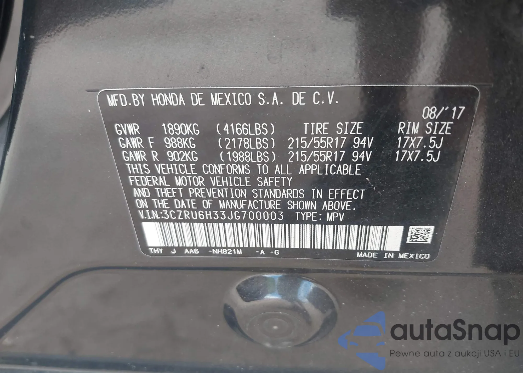 LOT: 43241671 VIN: 3CZRU6H33JG700003