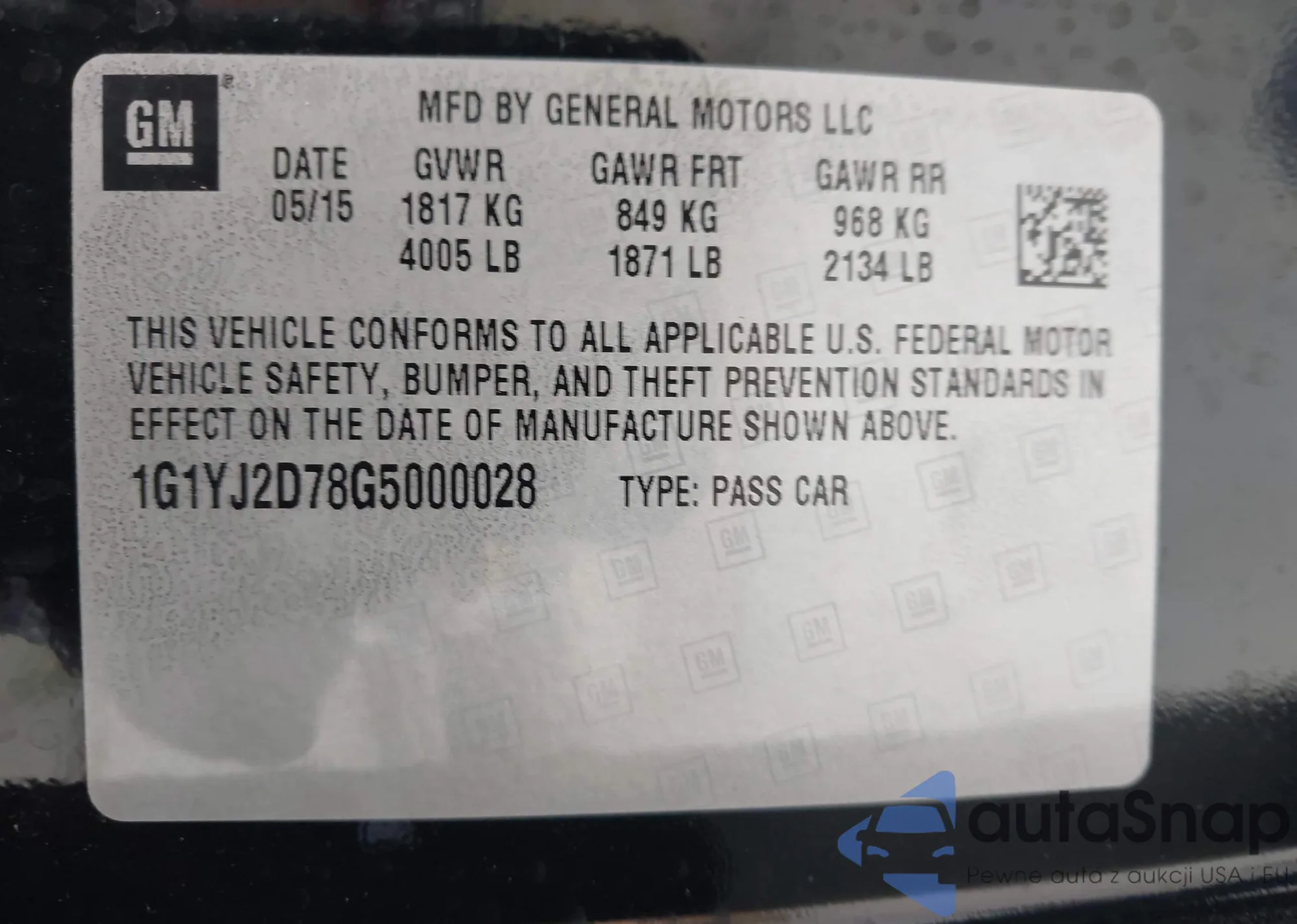 • VIN 1G1YJ2D78G5000028