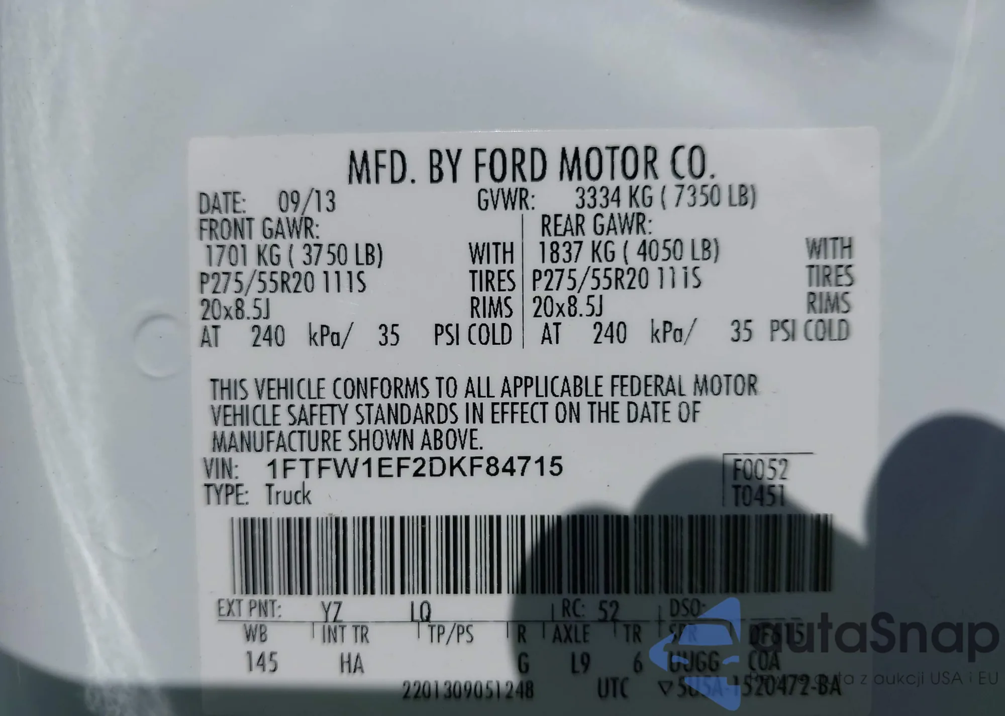 LOT: 42842167 VIN: 1FTNW20PX4EB03691