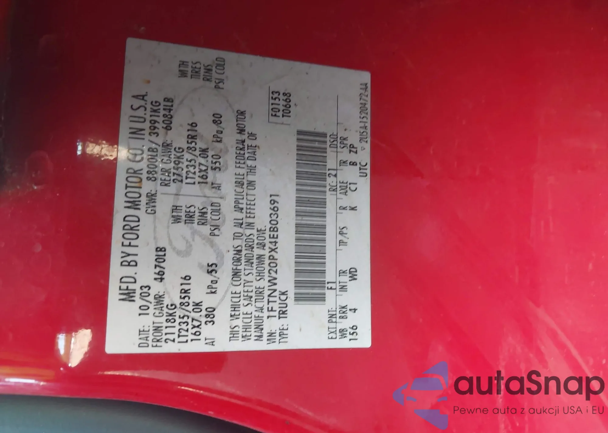 • VIN 1FTNW20PX4EB03691