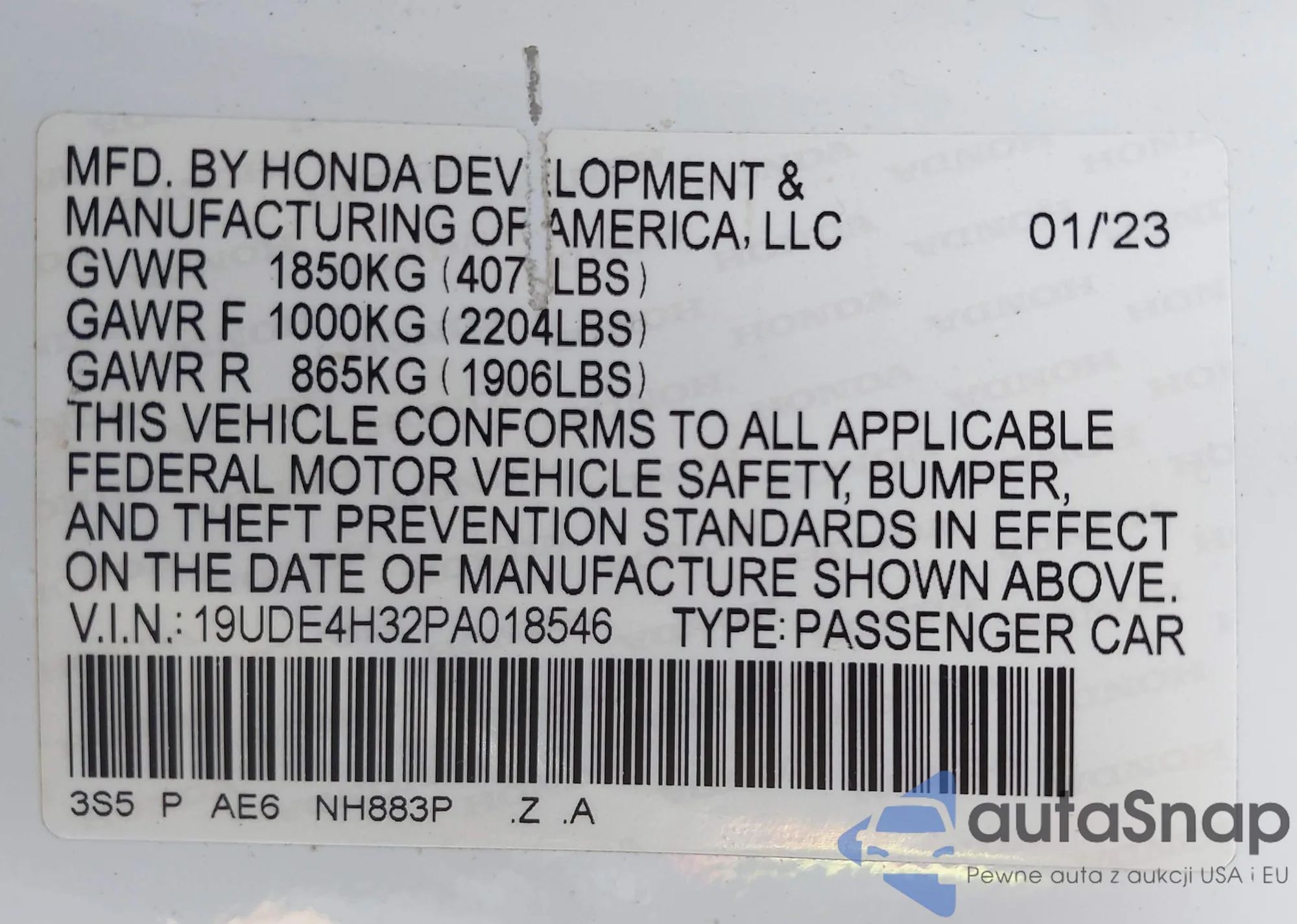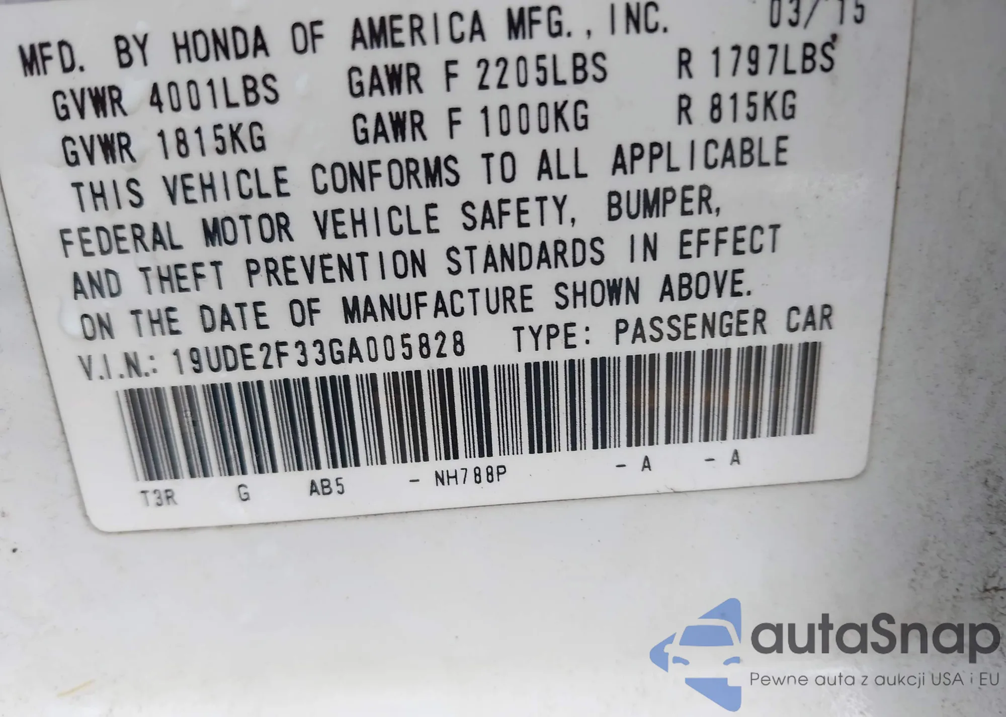 • VIN 19UDE2F33GA005828