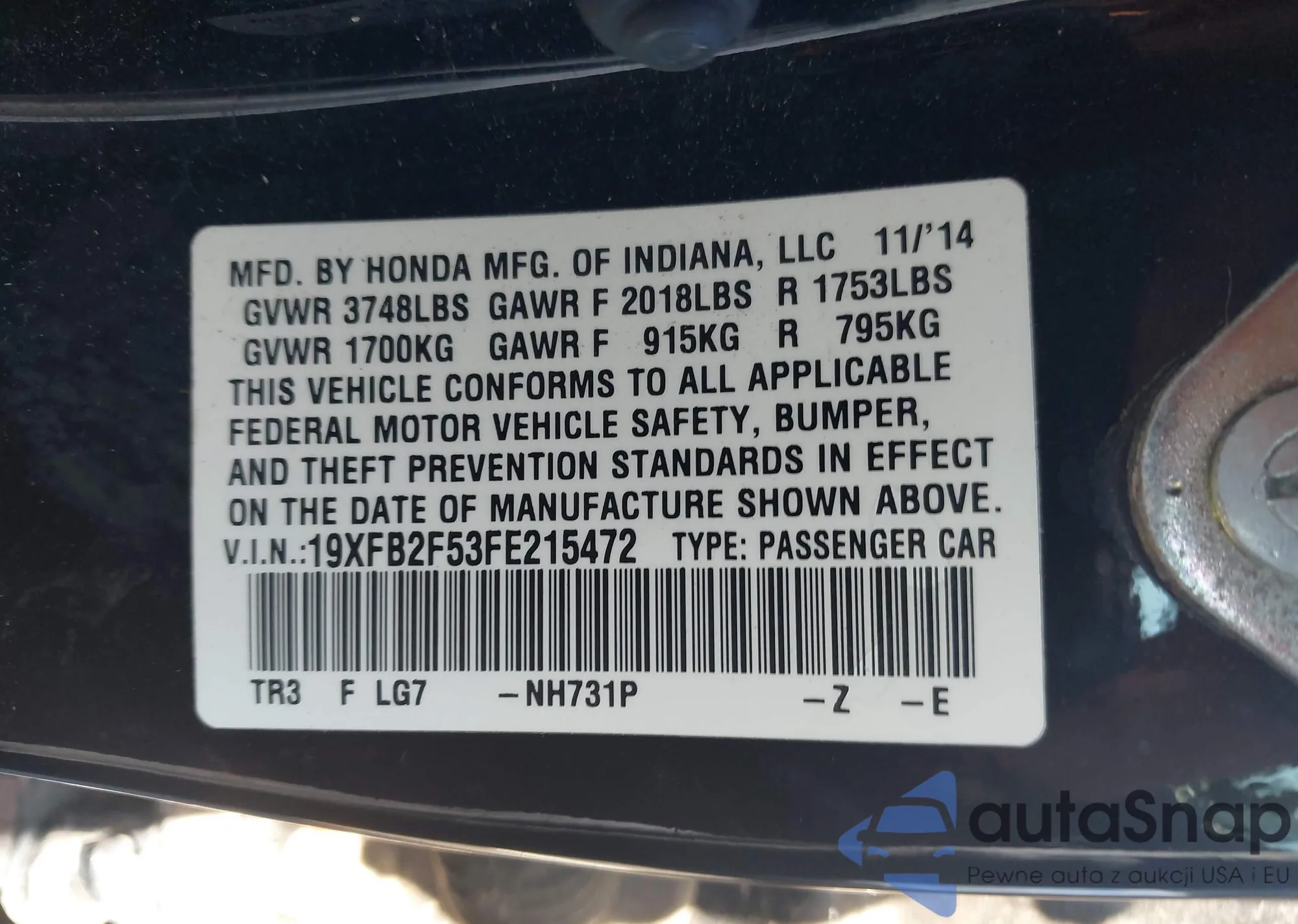 • VIN 19XFB2F53FE215472