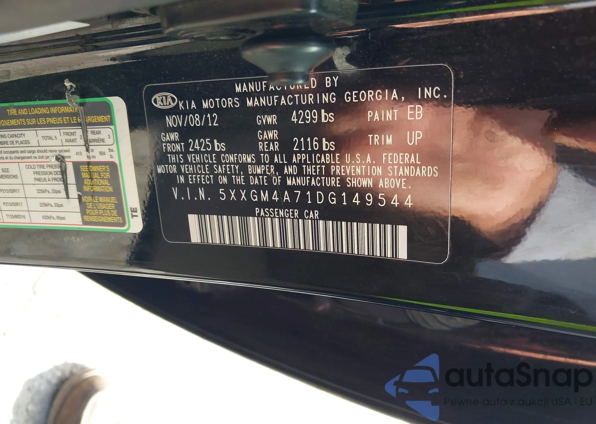 • VIN 5XXGM4A71DG149544