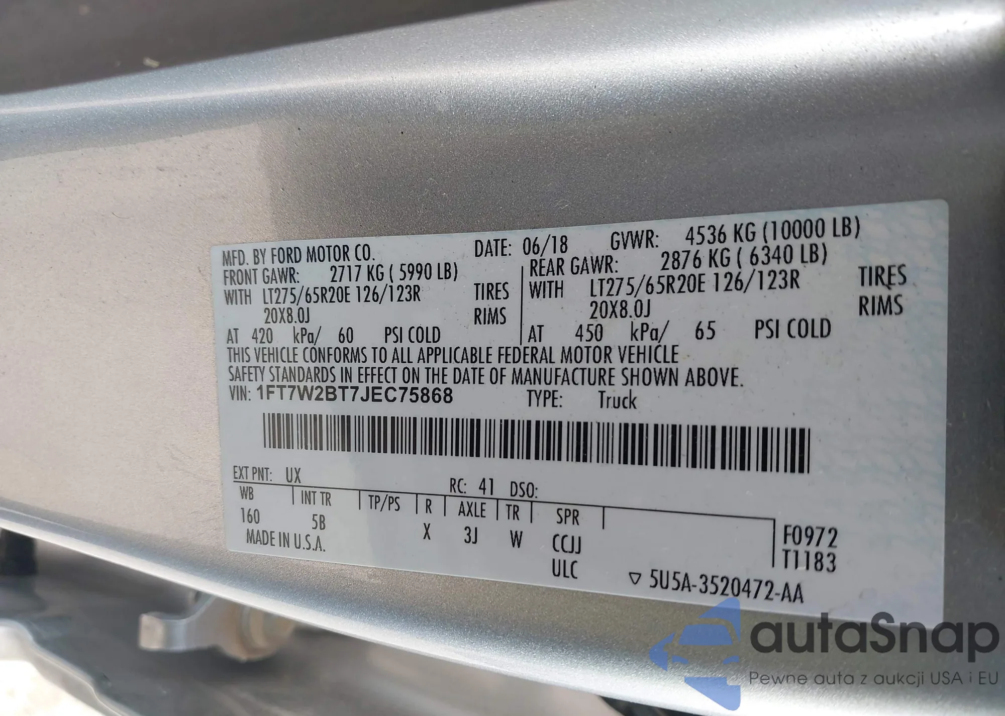 LOT: 42994877 VIN: 1FA6P8TH1L5148001