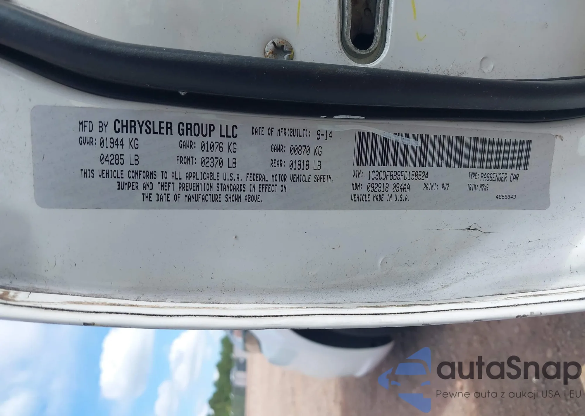 LOT: 43320632 VIN: 1C3CDFBB9FD158524