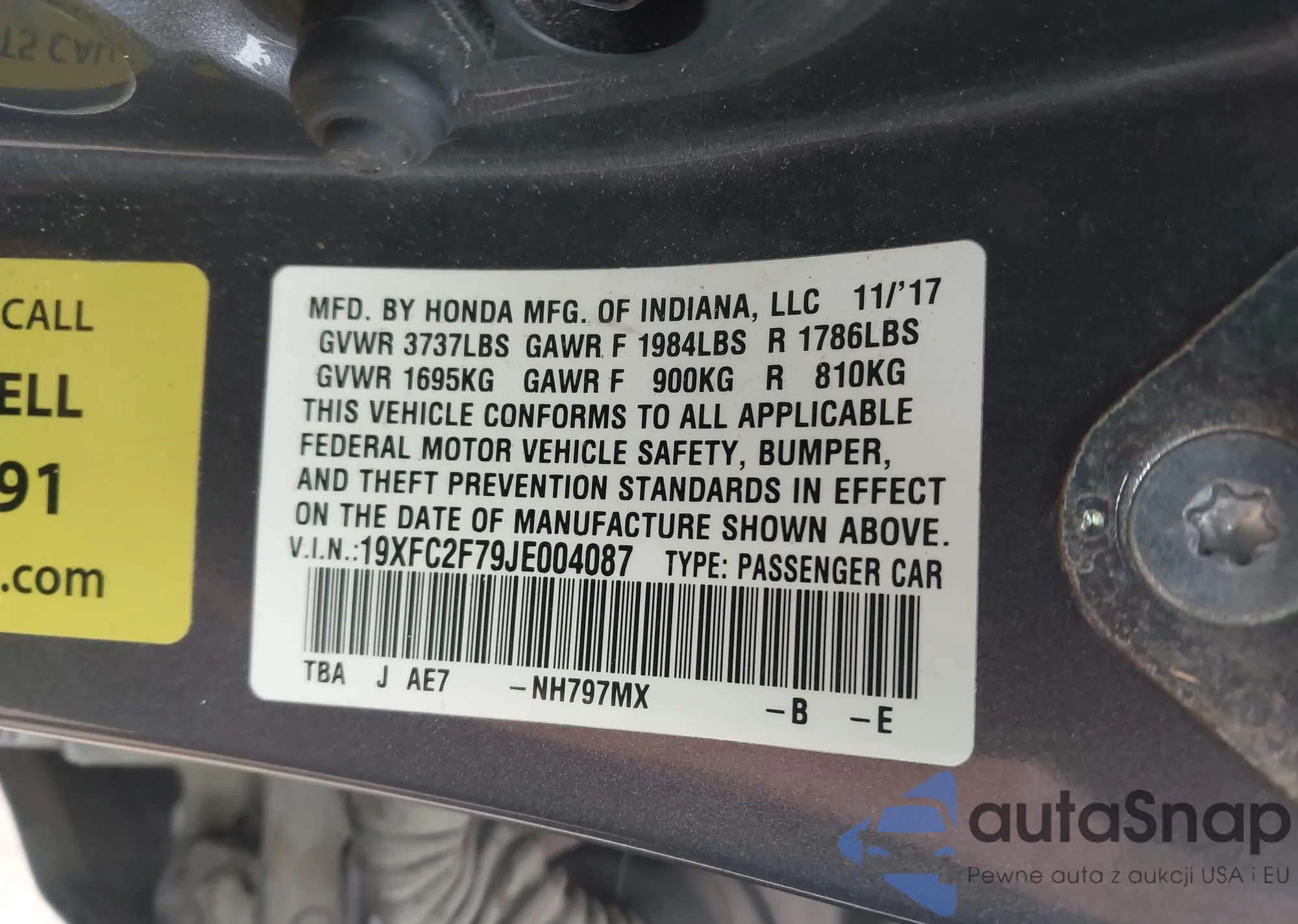 LOT: 43457741 VIN: 19XFC2F79JE004087
