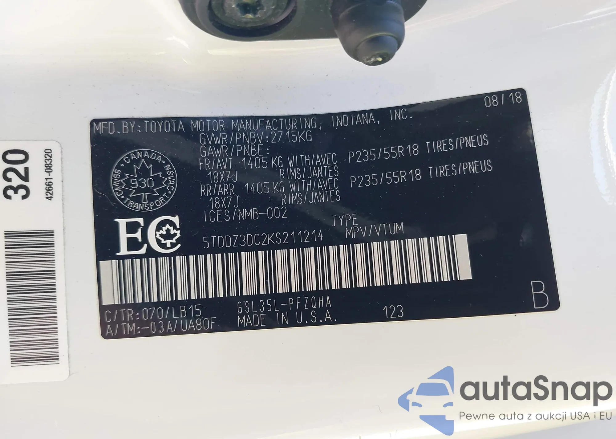 • VIN 5TDDZ3DC2KS211214