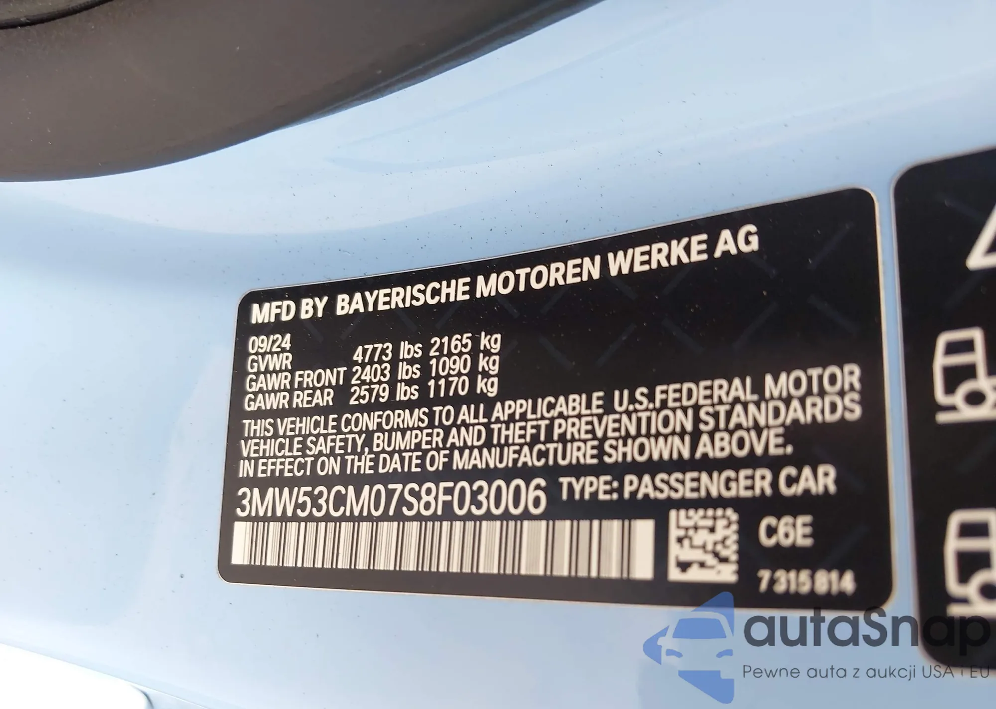 • VIN 3MW53CM07S8F03006