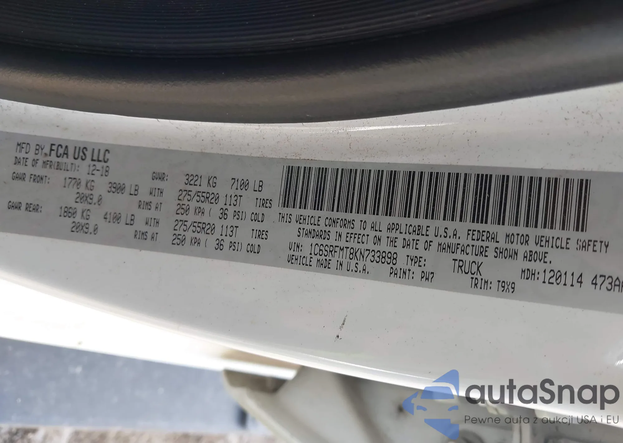 • VIN 1C6SRFMT8KN733898