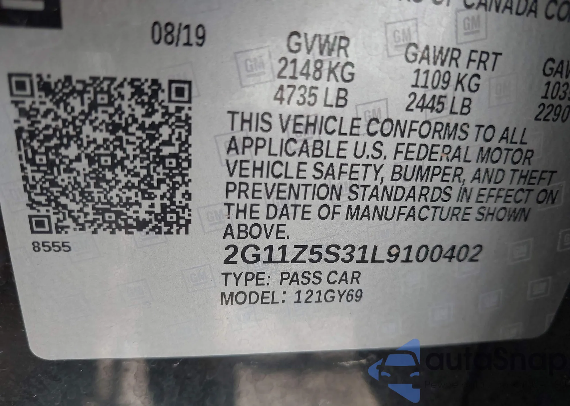 • VIN 2G11Z5S31L9100402