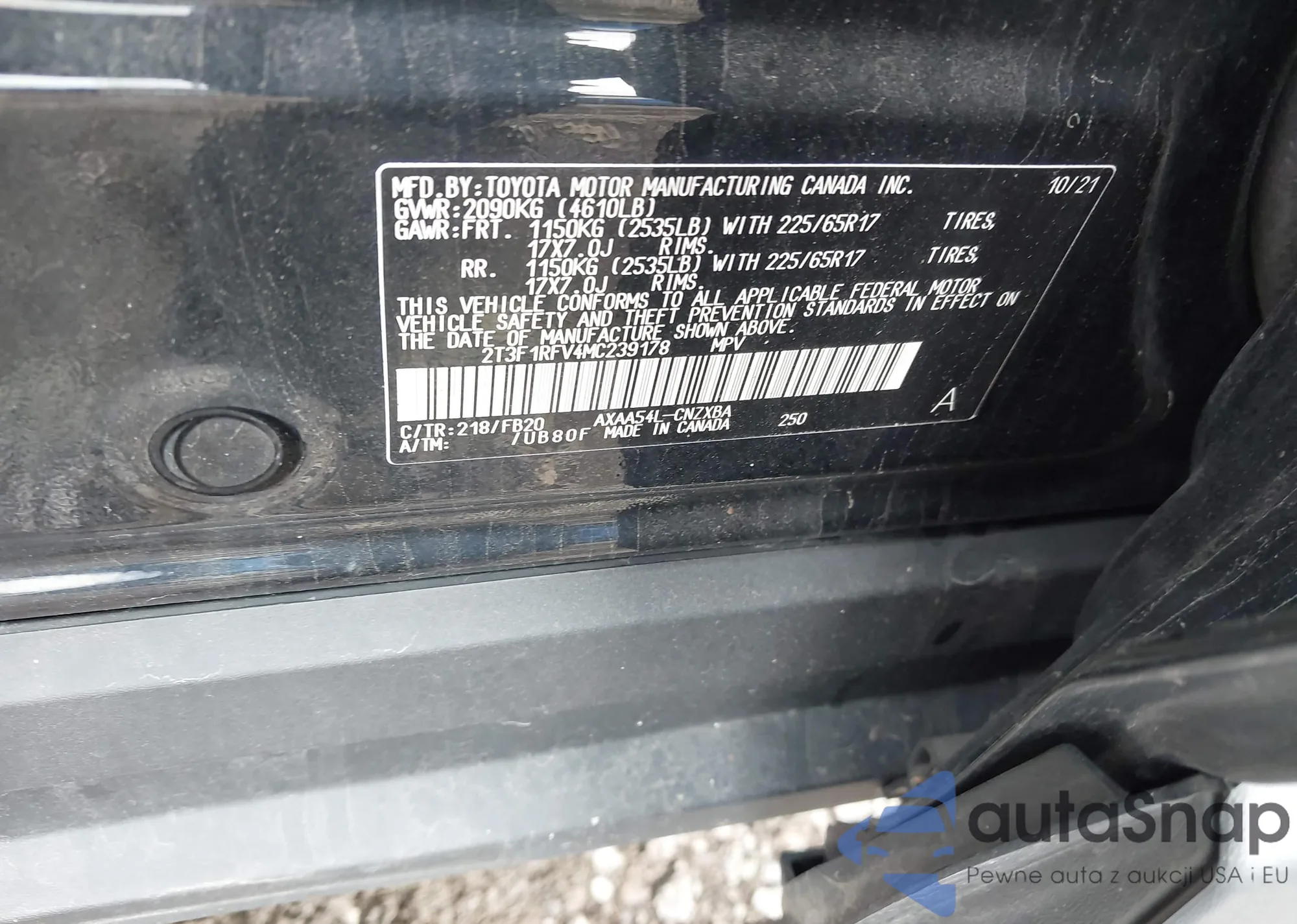 LOT: 43017239 VIN: 2T3F1RFV4MC239178