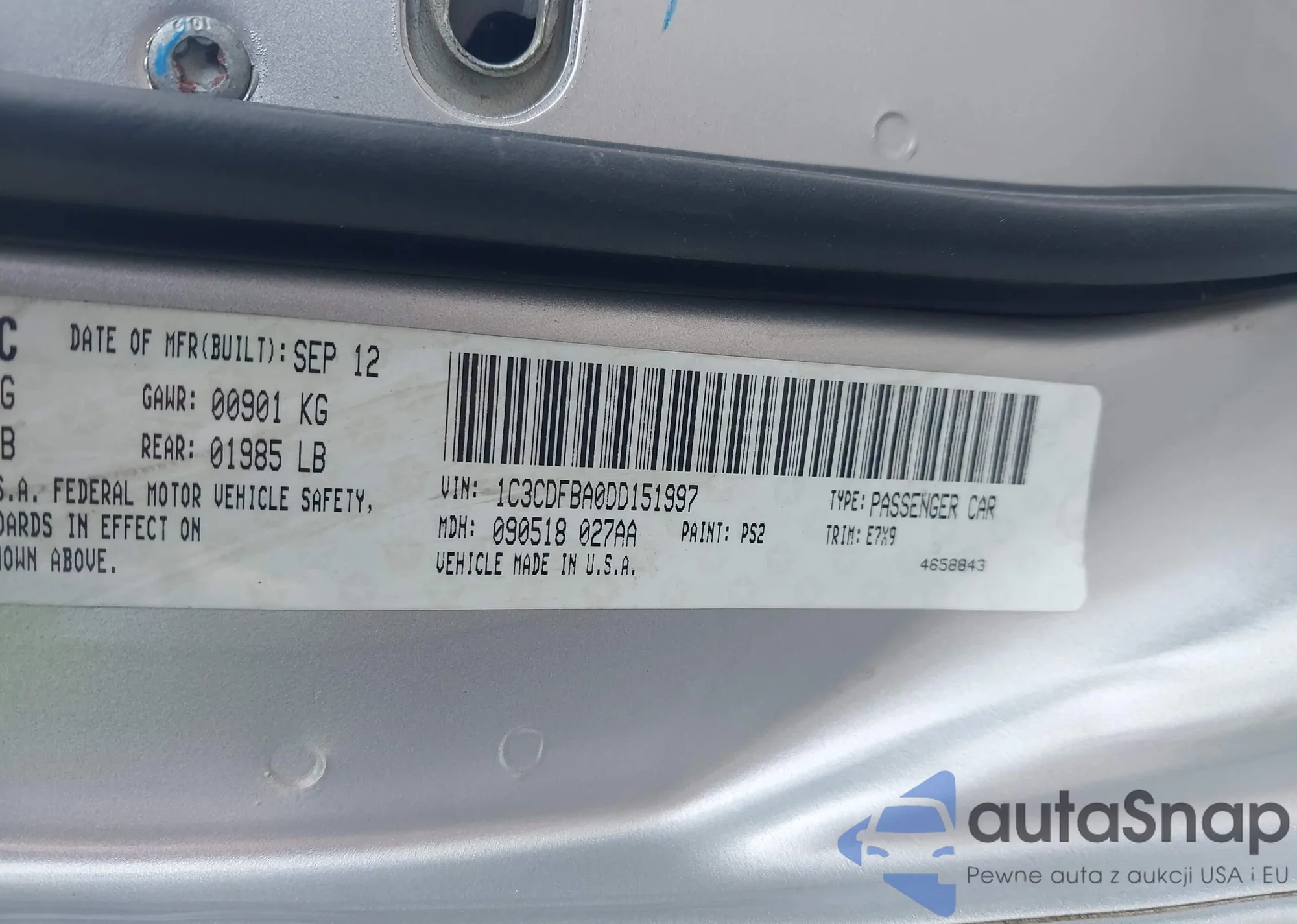 LOT: 43043105 VIN: 1C3CDFBA0DD151997
