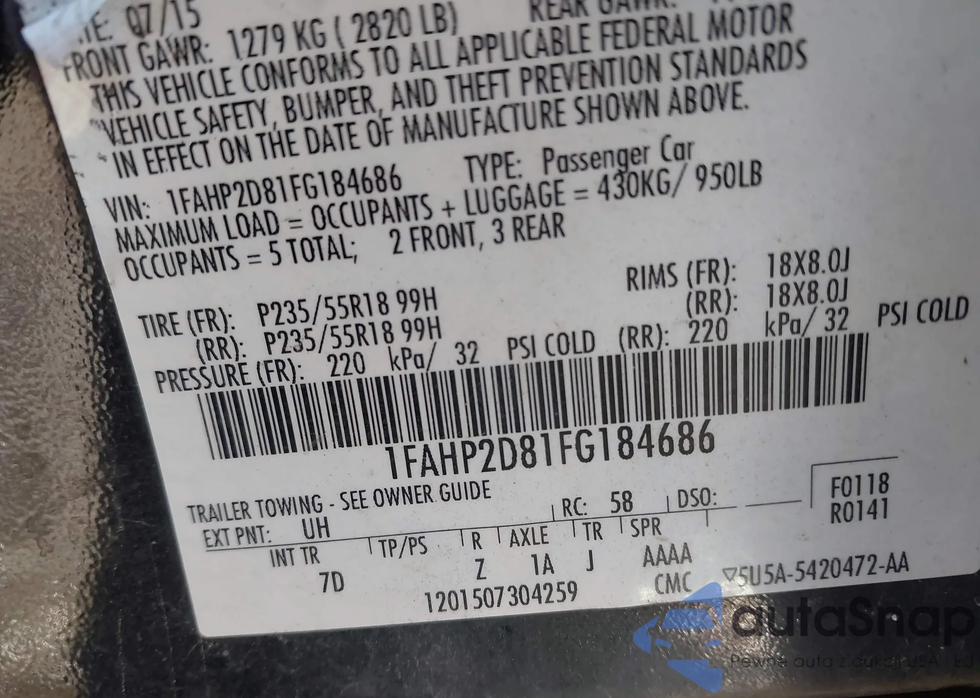 • VIN 1FAHP2D81FG184686