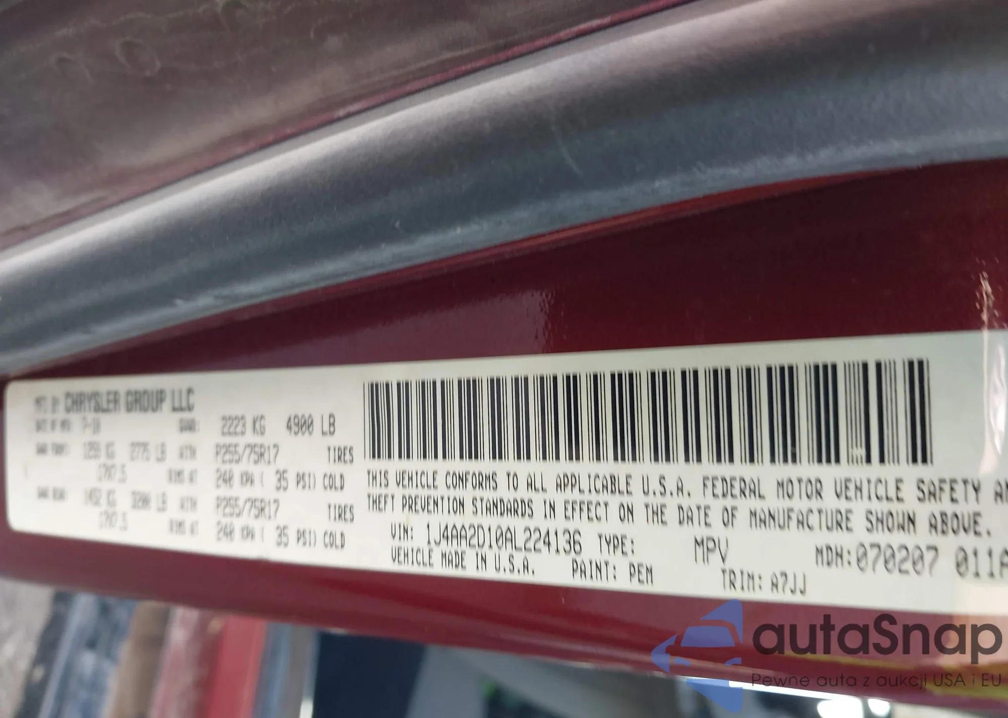 • VIN 1J4AA2D10AL224136
