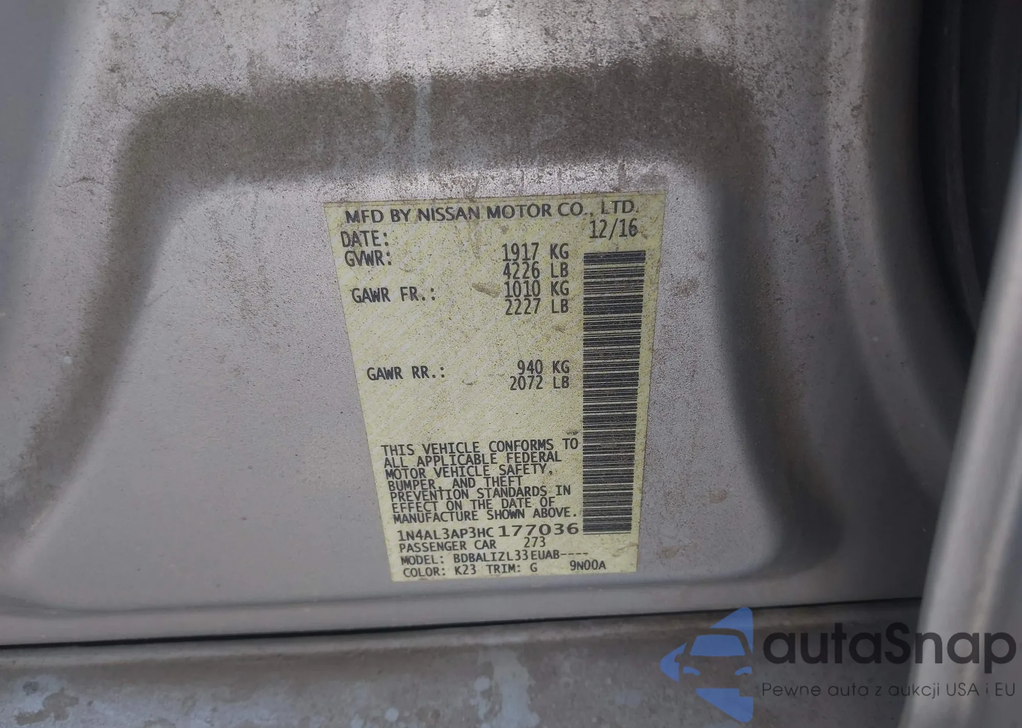 LOT: 43057898 VIN: 1N4AL3AP3HC177036
