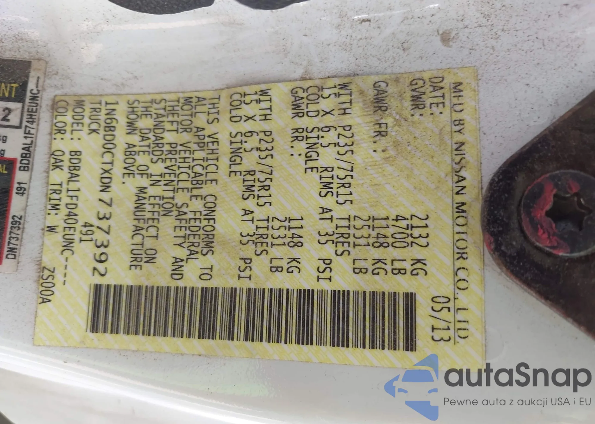 LOT: 43048701 VIN: 1N6BD0CTXDN737392