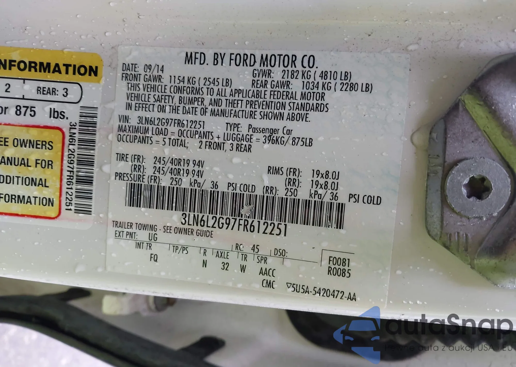 LOT: 43070773 VIN: 3LN6L2G97FR612251