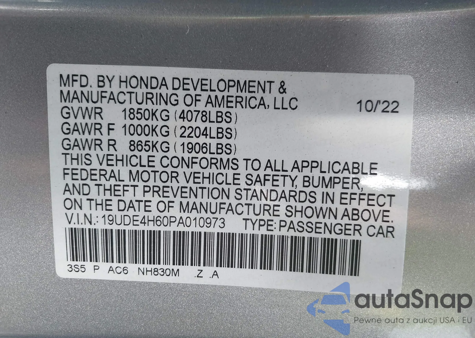 • VIN 2HGFG3B53DH510751