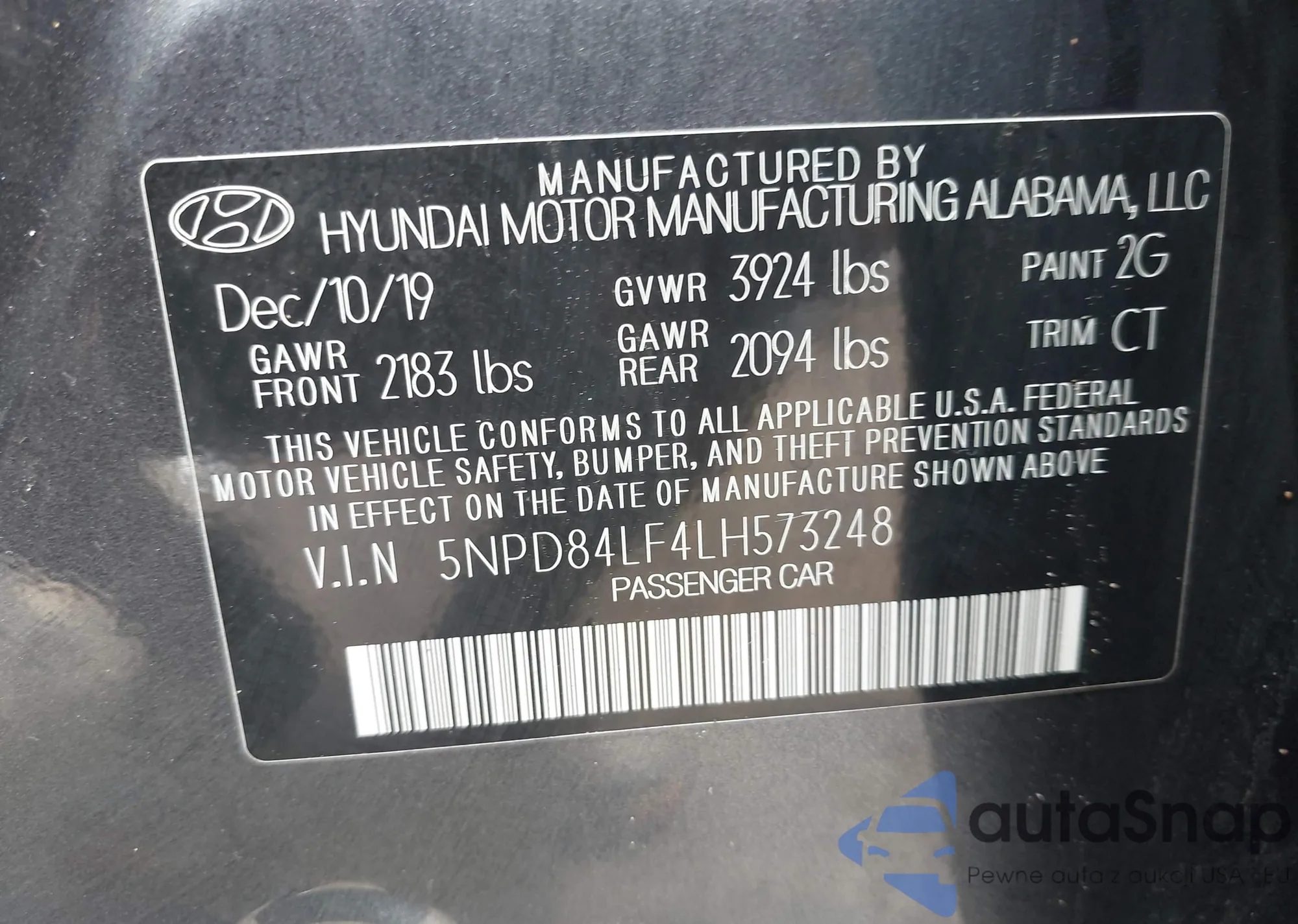 • VIN 5NPD84LF4LH573248