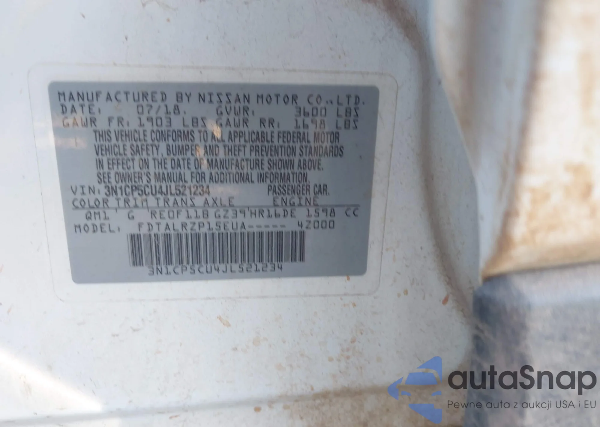 • VIN 3N1CP5CU4JL521234