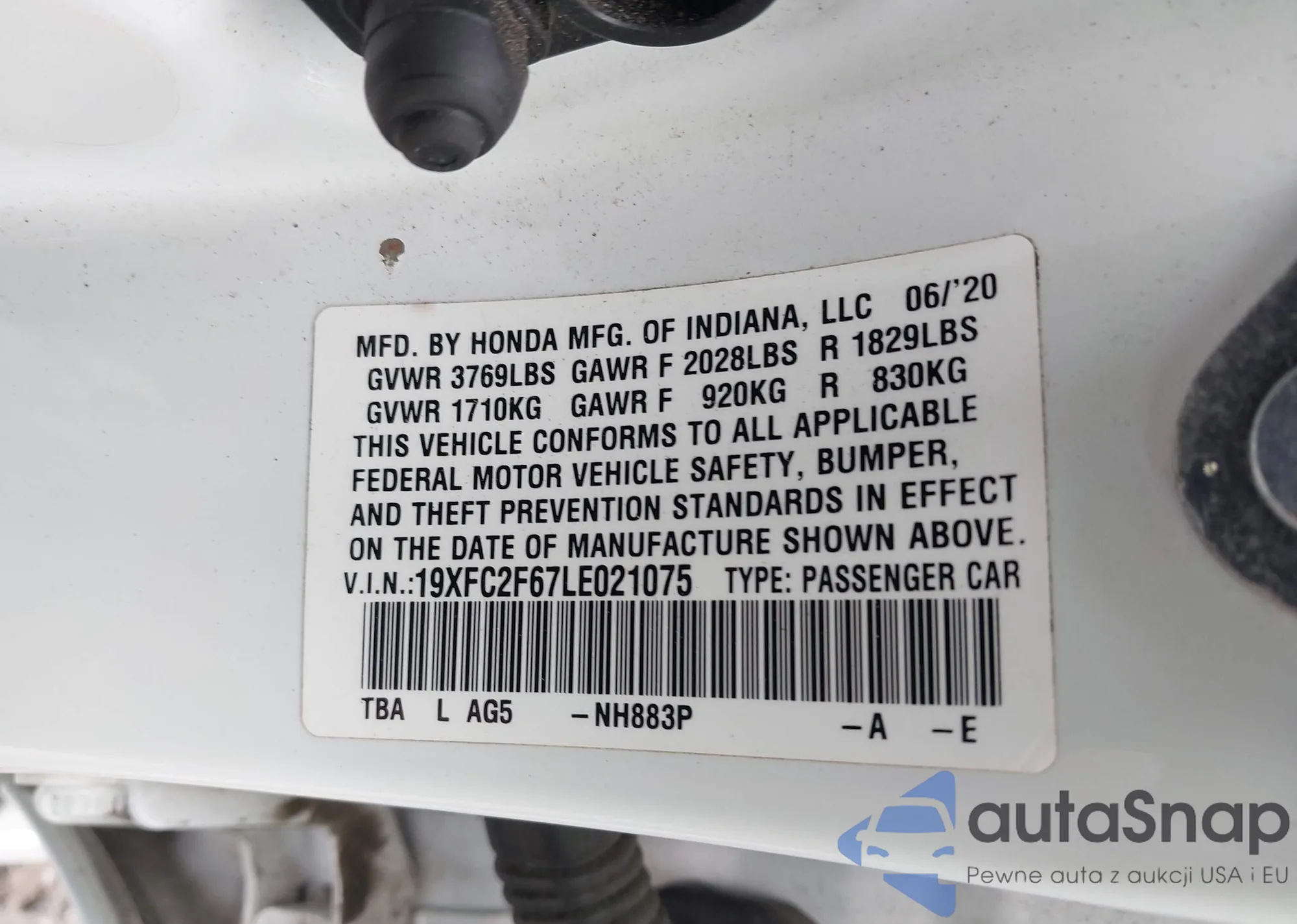 • VIN 19XFC2F67LE021075