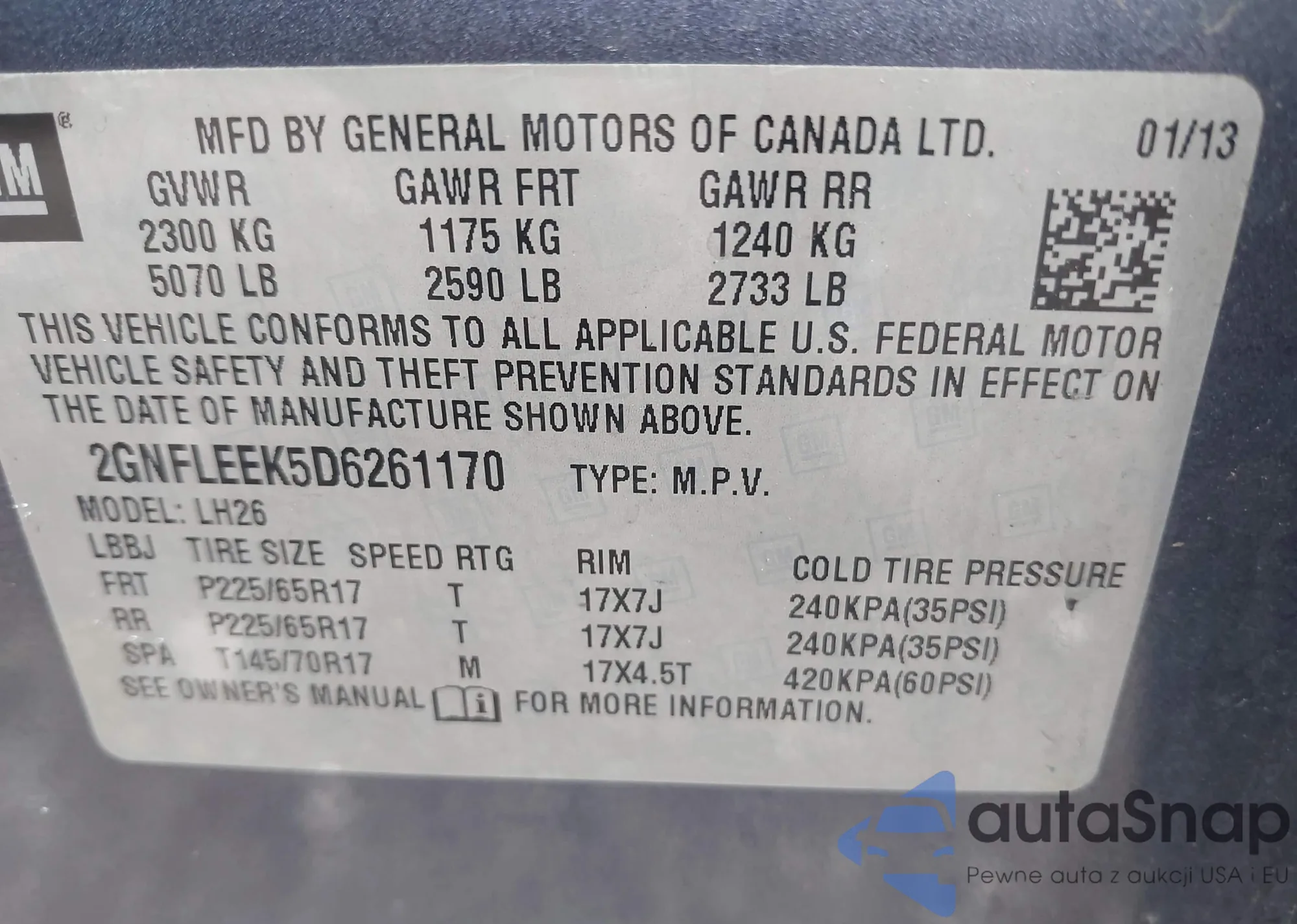 • VIN 2GNFLEEK5D6261170
